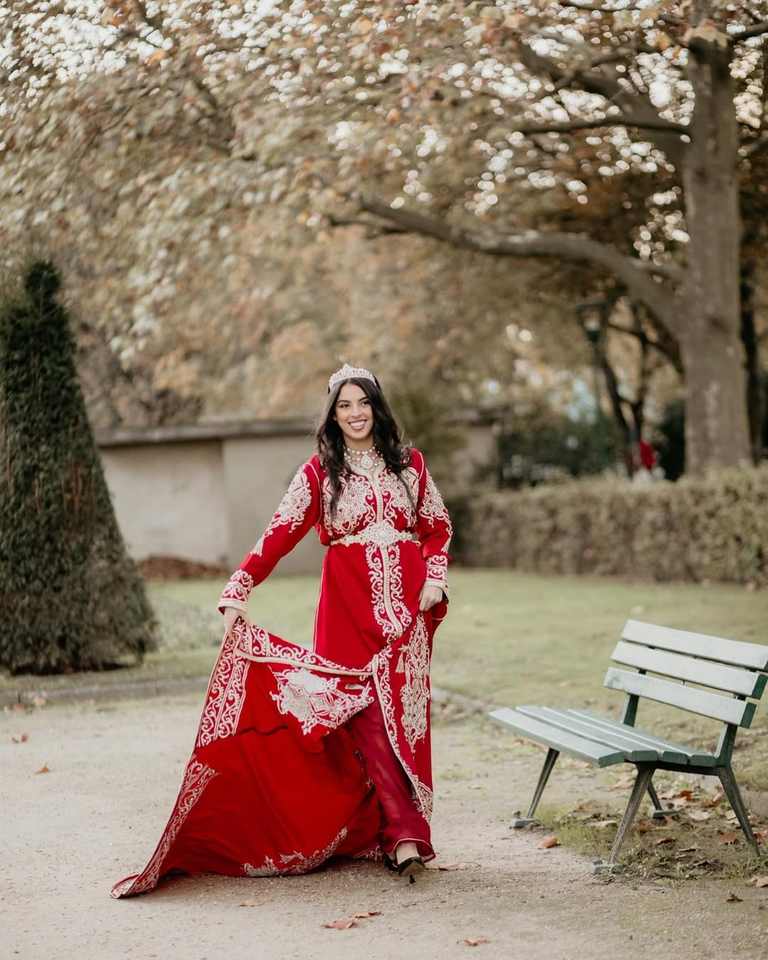 ผ้าไหมสีแดงแบบ caftan โมร็อกโกปรับแต่งได้อย่างเต็มที่พร้อมงานปักทำด้วยมือสไตล์ลำลองป้องกันไฟฟ้าสถิตย์และระบายอากาศ