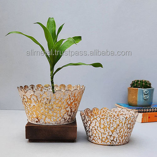 ชุดกระถางตั้งโต๊ะแบบเคลือบผงเป็นมิตรต่อสิ่งแวดล้อม2ชั้นสำหรับตกแต่งในบ้านสำนักงานสวนกลางแจ้งสถานรับเลี้ยงเด็ก