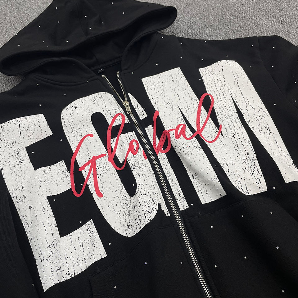 เสื้อมีฮู้ดติดซิปสำหรับผู้ชายเสื้อมีฮู้ดผ้าปักโลโก้ผ้าเฟรนช์เทอร์รี่แนวสตรีท