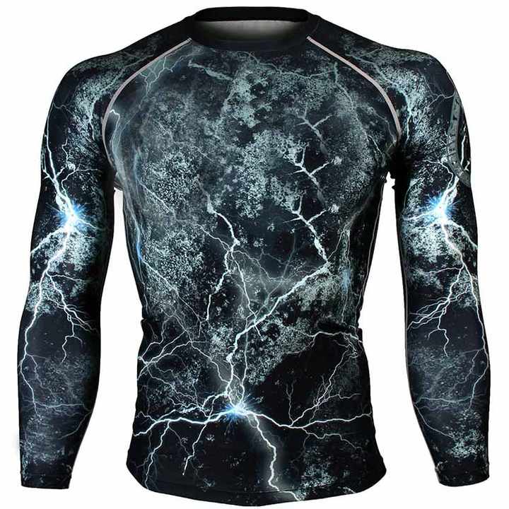 เสื้อรัดรูปสำหรับต่อสู้ MMA มวย แบบคอโอ แขนยาว ระบายอากาศได้ดี ป้องกันรังสียูวี UPF50+ แห้งเร็ว พิมพ์ลายแบบ Heat-Transfer ปรับแต่งได้ตามต้องการ