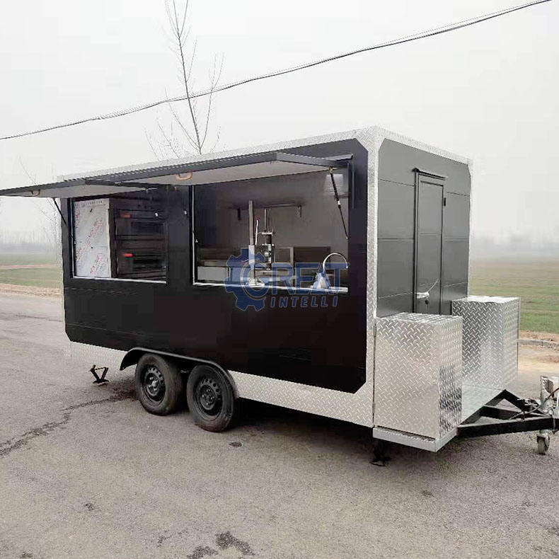 รถขายอาหารเคลื่อนที่พร้อมอุปกรณ์ครบครันสำหรับขายไก่ทอด วาฟเฟิล น้ำผลไม้ ฮอทดอก ขนมขบเคี้ยว ไอศกรีม และมันฝรั่งทอด เหมาะสำหรับร้านอาหารกลางแจ้ง