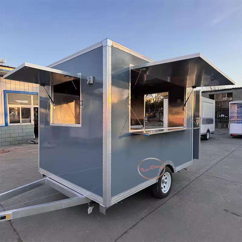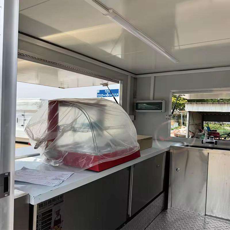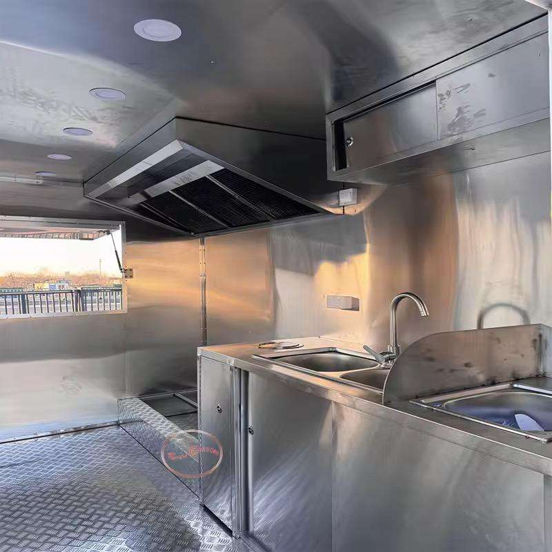 รถบรรทุกอาหารจานด่วนแบบมีอุปกรณ์ครบครันใช้ในห้องครัวห้องน้ำที่เสิร์ฟไอศกรีมขนมขายปลีกทนทานต่อการเกิดสนิม