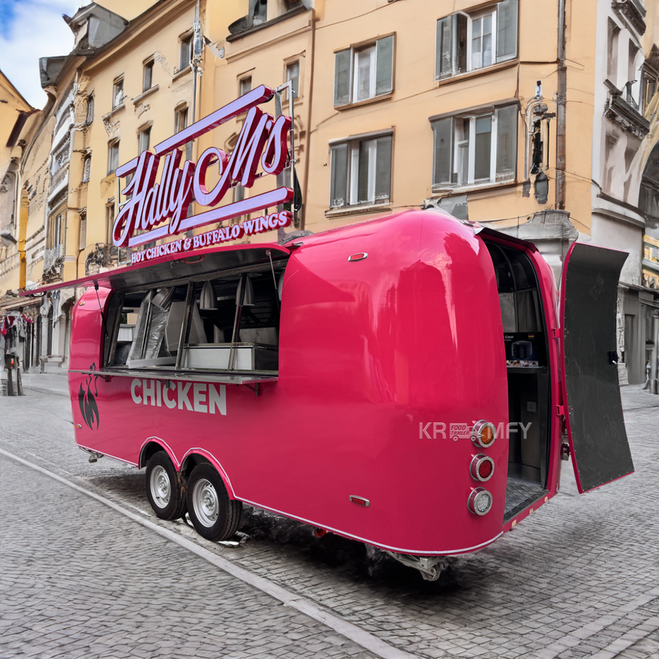 รถขายไอศกรีมเคลื่อนที่พร้อมอุปกรณ์ครบครัน รถพ่วงเคลื่อนที่เร็วสำหรับใช้งานกลางแจ้ง ร้านอาหารเคลื่อนที่พร้อมอุปกรณ์ทำครัวครบชุด ทำจากสแตนเลส