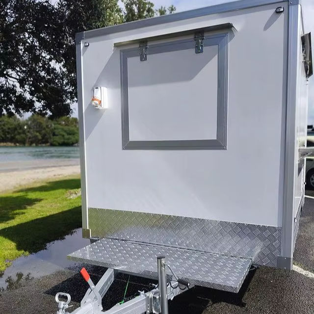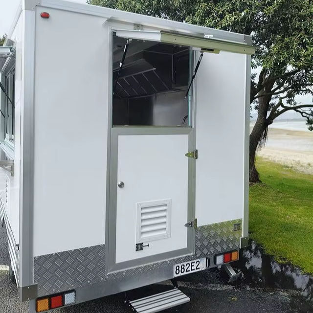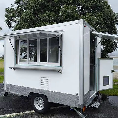 เครื่องพ่วงอาหารเคลื่อนที่สำหรับขายปลีกขนมขบเคี้ยวผลิตภัณฑ์นมขนมฮอทด็อกทำจากบาร์บีคิวทำจากข้าวโพด