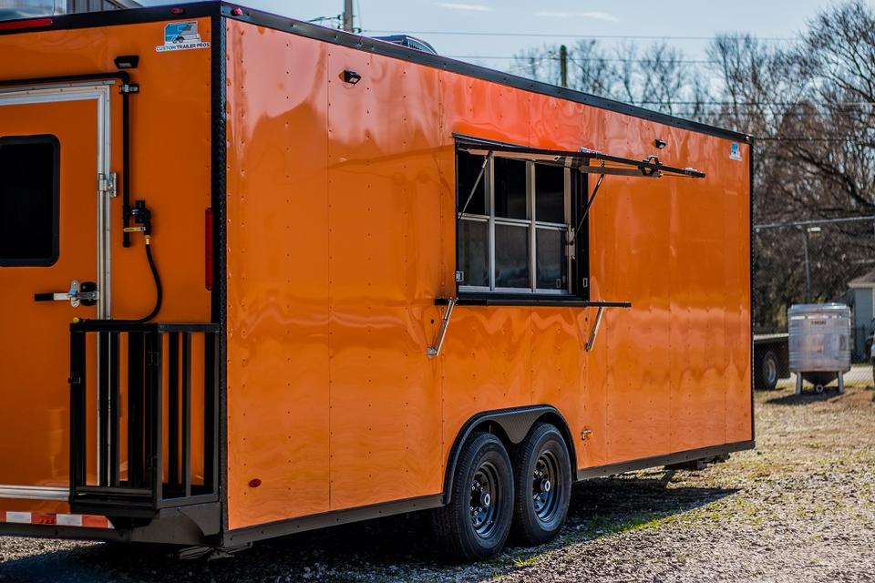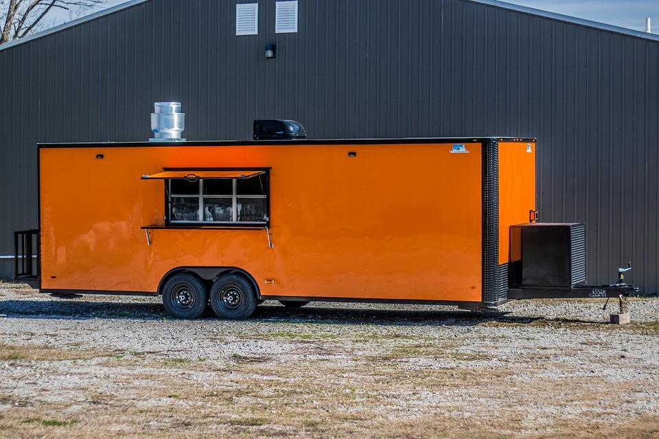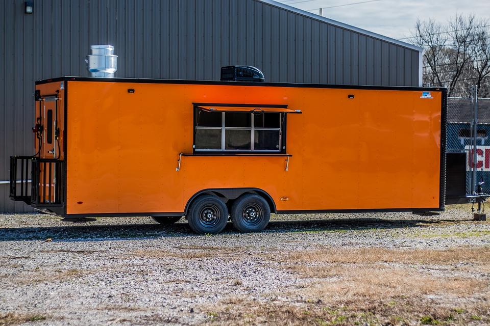 รถพ่วงขายอาหารเคลื่อนที่พร้อมอุปกรณ์ครบครัน สำหรับขายฮอทดอก ขนมขบเคี้ยว และเฟรนช์ฟรายส์ เหมาะสำหรับงานจัดเลี้ยงกลางแจ้ง