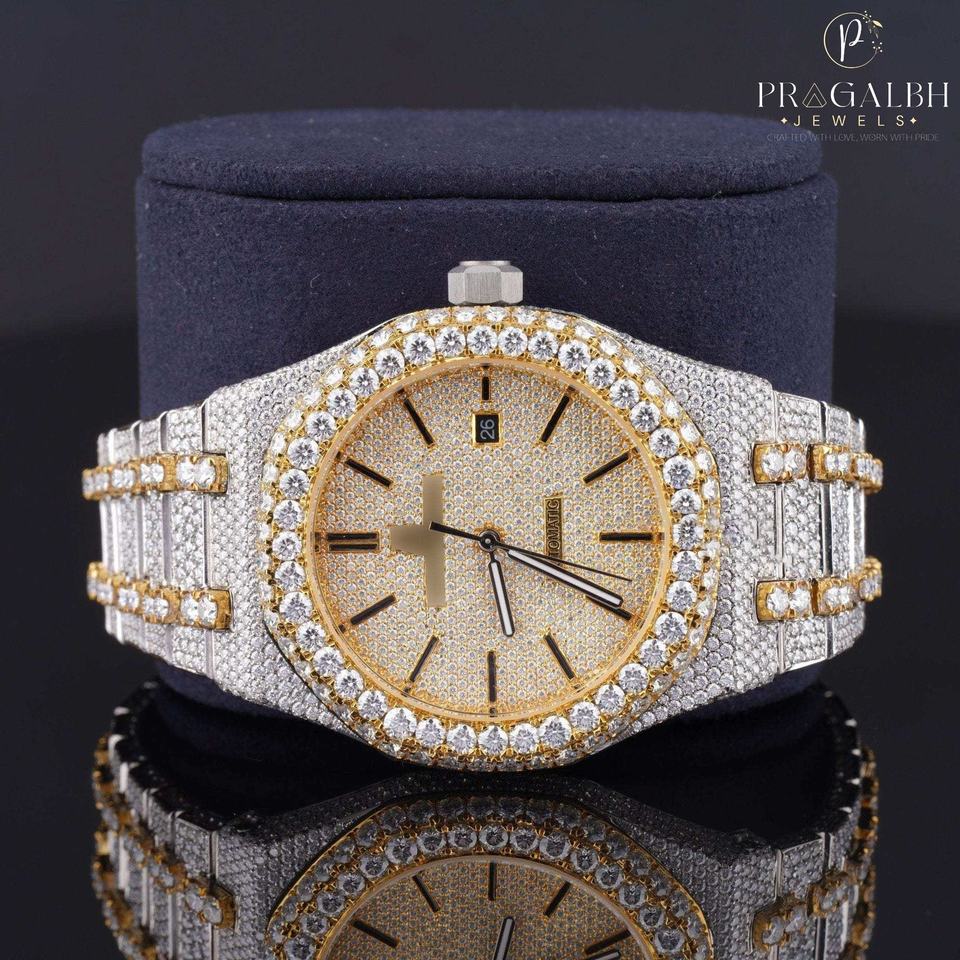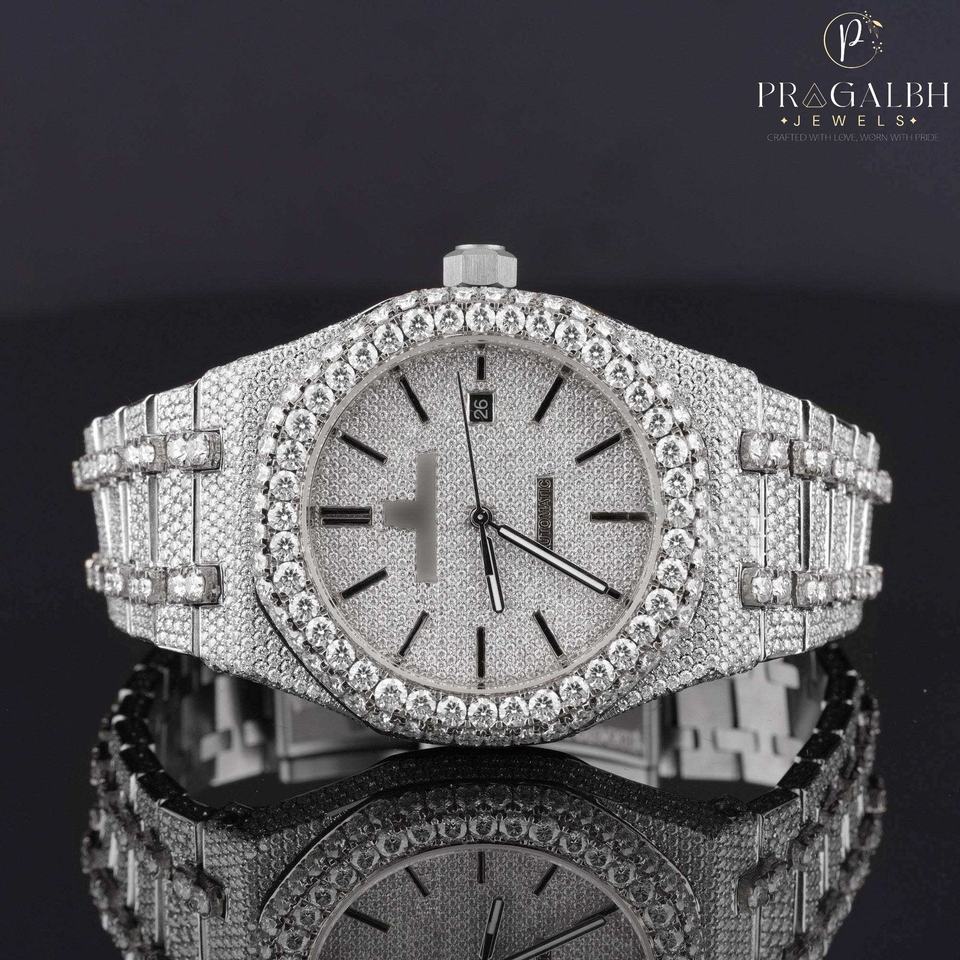 นาฬิกาเพชรมอสซาไนท์อัตโนมัติสำหรับผู้ชายดีไซน์สแตนเลสสตีลกันน้ำเพชรหรูหราเหมาะสำหรับงานพิเศษ