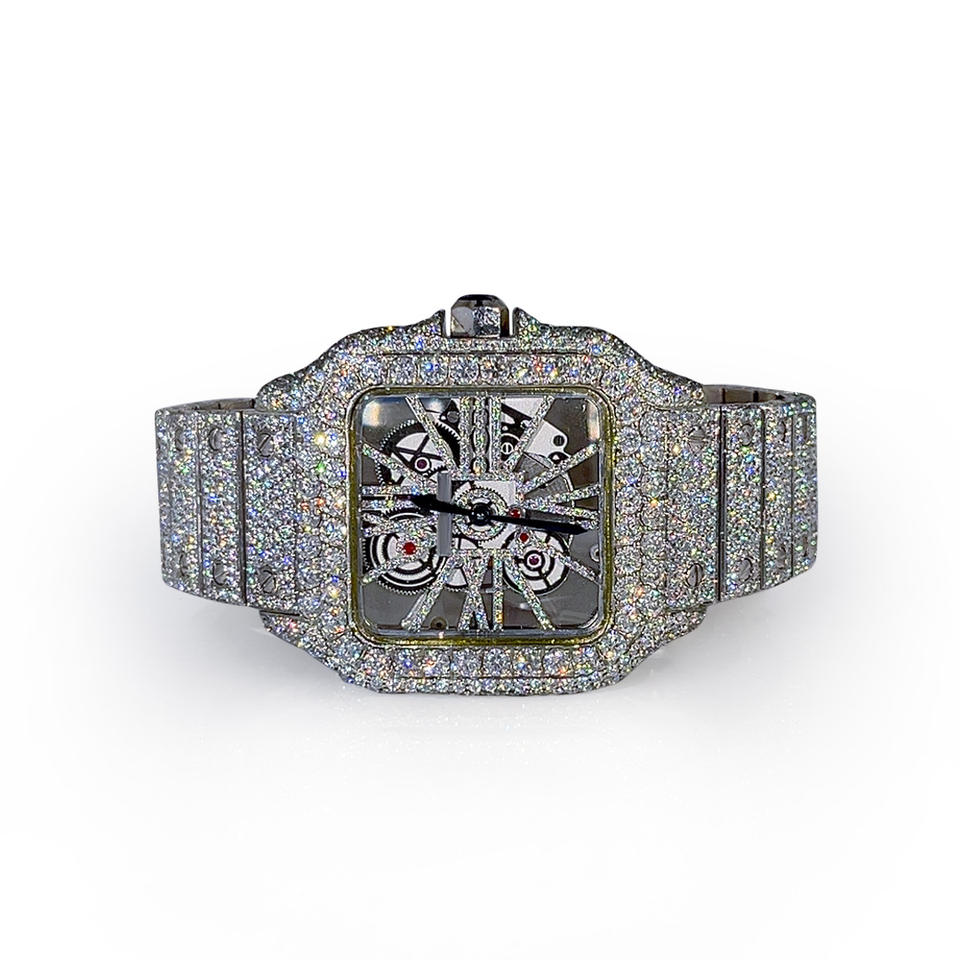 นาฬิกาแบรนด์เนมประดับเพชรโมอิสซาไนต์เต็มเรือน สไตล์ฮิปฮอป วัสดุเงินแท้ 925 สำหรับงานหมั้น งานแต่งงาน ของขวัญวันครบรอบ
