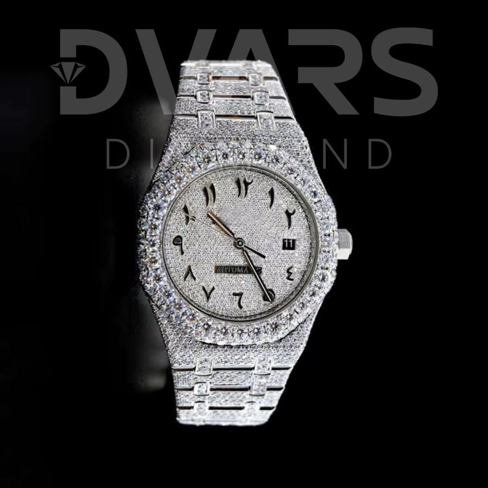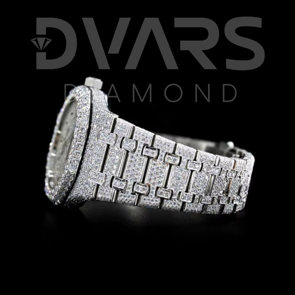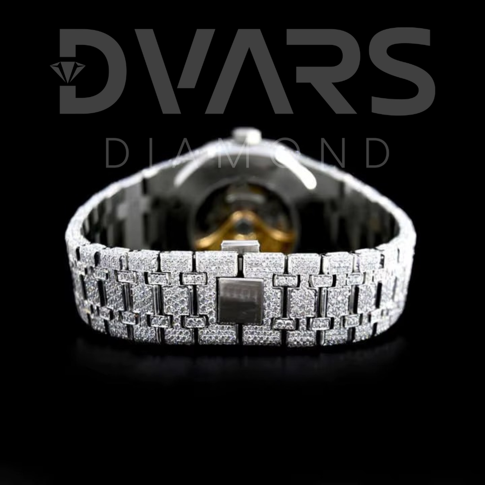 นาฬิกาเพชรมอยส์ซอไนท์สุดหรูสำหรับทั้งชายและหญิงความชัดเจนในการเคลื่อนที่เคลื่อนที่ด้วยกลไกระบบสแตนเลสสายรัดแก้วสีทองสีขาว