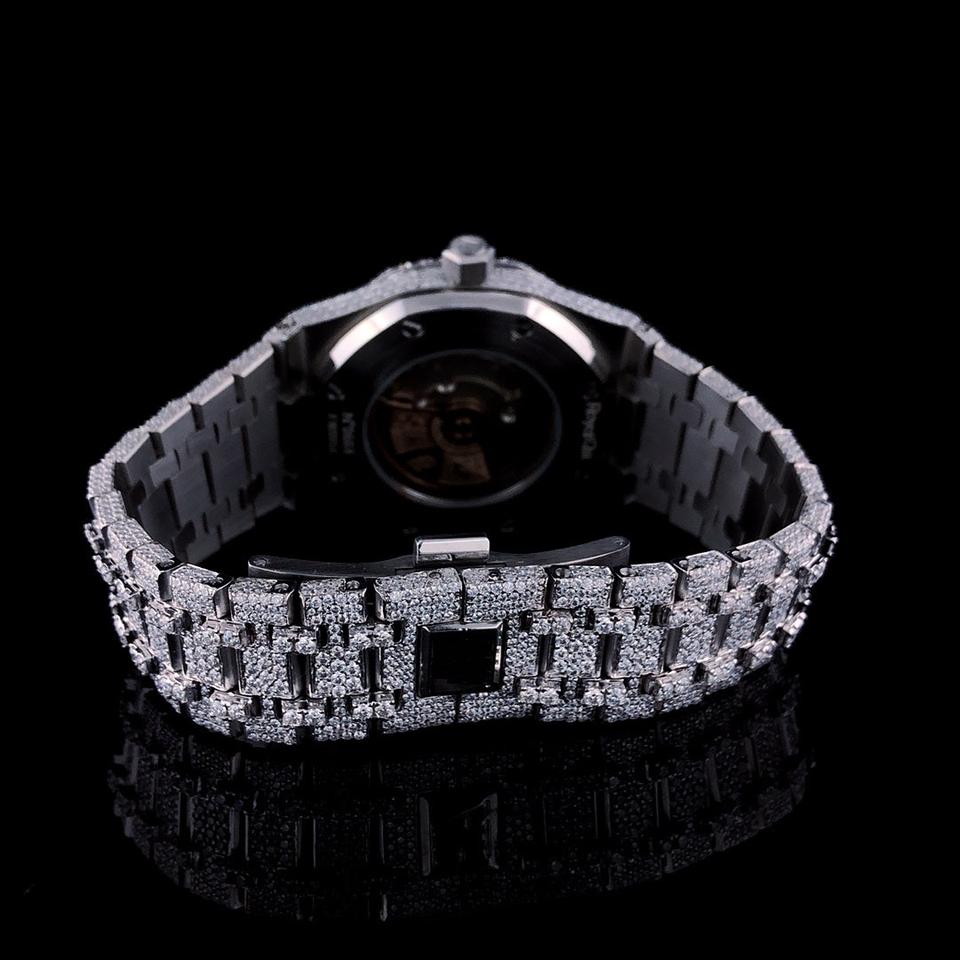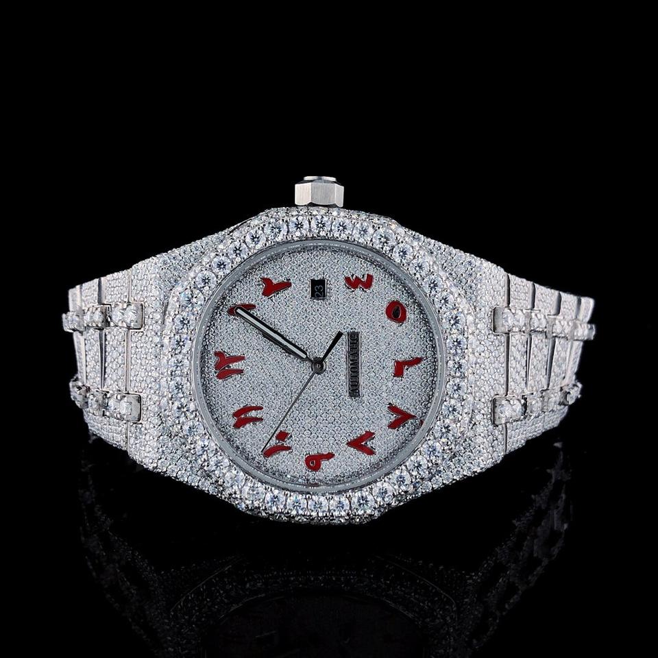 นาฬิกาข้อมือขาวดำประดับเพชร VVS หน้าปัดวันที่-หน้าปัดคุณภาพสูงสำหรับผู้นำเทรนด์