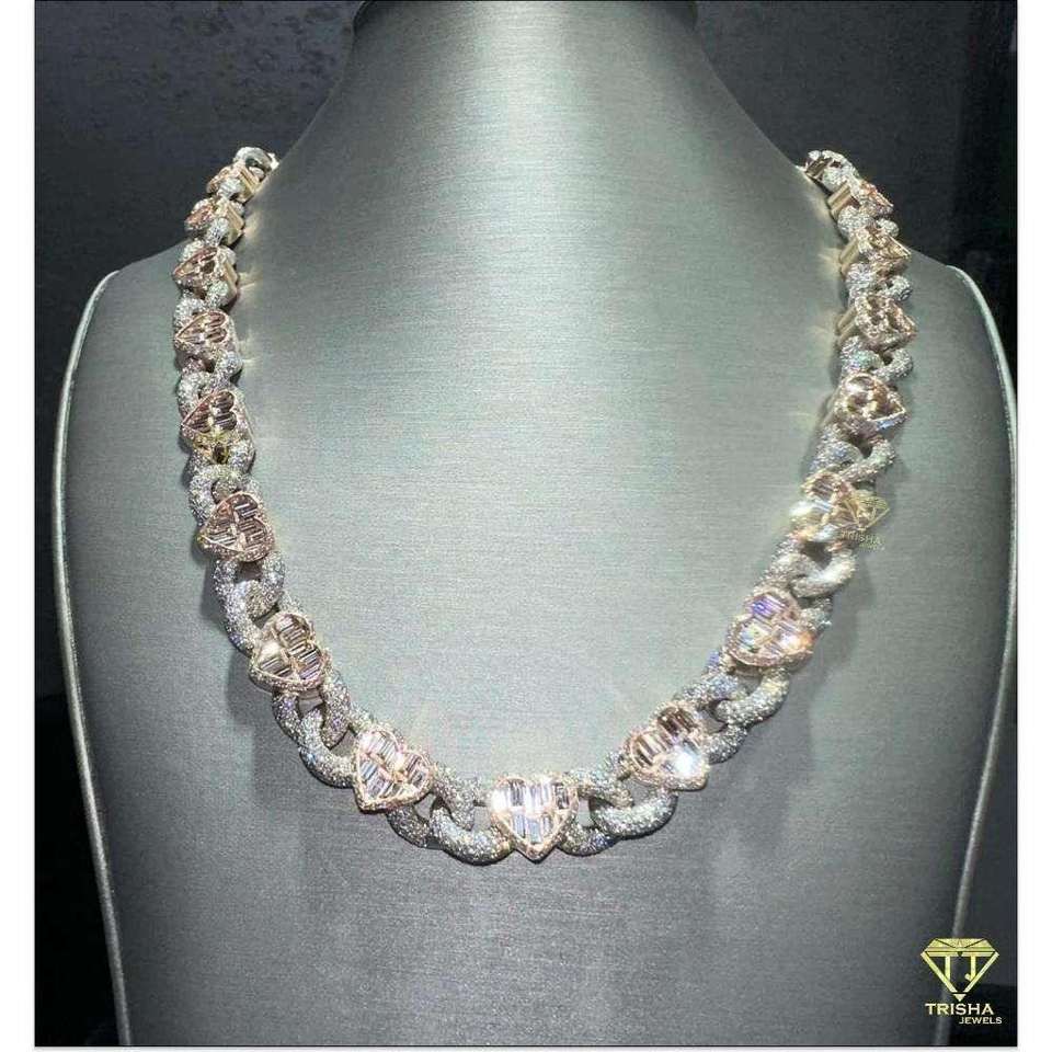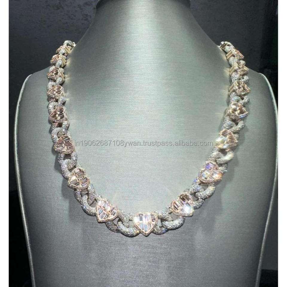 สร้อยคอเงินคิวบาพร้อมบาแกตต์และเพชรที่ปลูกในห้องปฏิบัติการทรงกลมเพื่อการรับรองสำหรับเสื้อแร็ปเปอร์แนวสตรีท