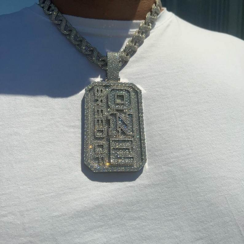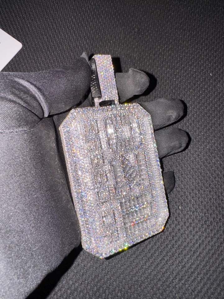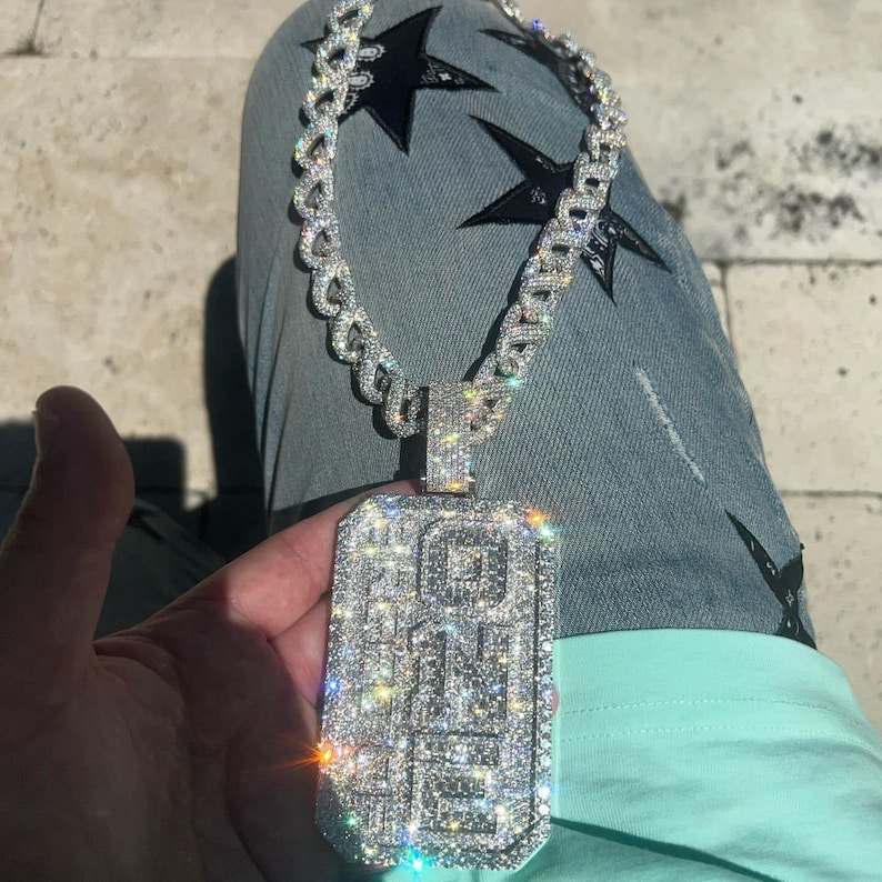 จี้โมอิสซาไนต์สั่งทำพิเศษแบบฝังเพชรเต็มตัว เงินแท้ 925 ชุบทอง ผ่านการทดสอบเพชร หรูหรา พร้อมตัวอักษรย่อ GCI & IDGL รับรอง