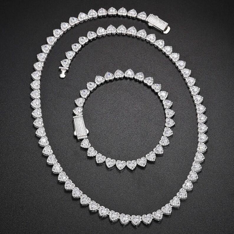 Iced Out หัวใจตัด Moissanite เพชรเทนนิสสร้อยคอและสร้อยข้อมือเครื่องประดับ Hip Hop ปรับแต่งเครื่องประดับที่ดีที่สุดของขวัญสําหรับชาย