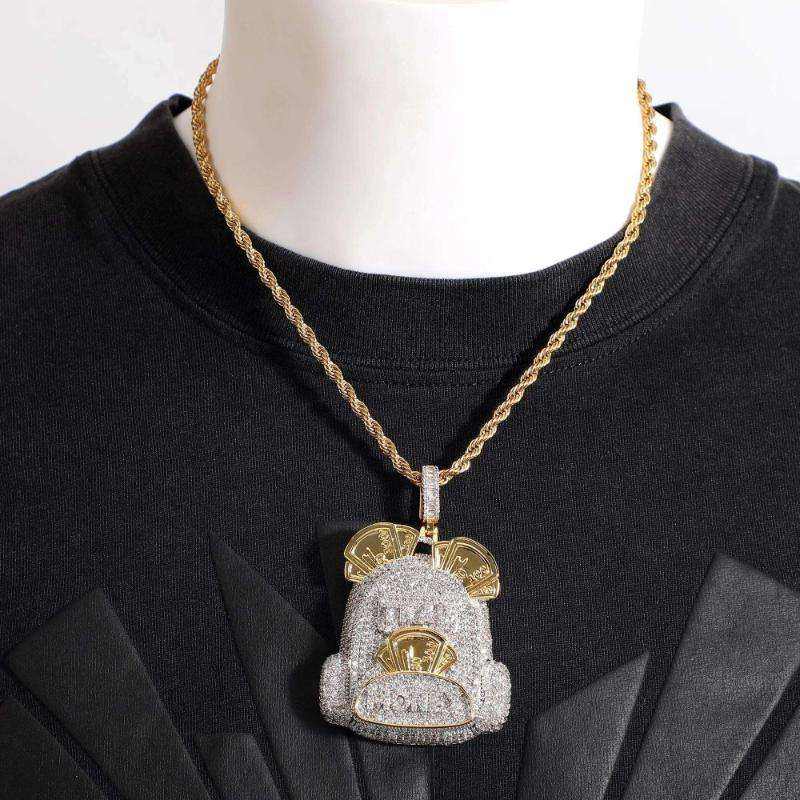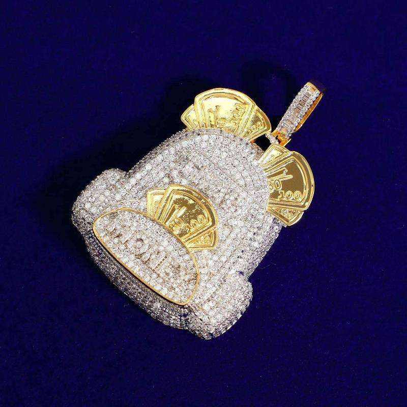 จี้และเครื่องประดับรูปถุงเงินแบบฮิปฮอปประดับเพชรเต็มตัว ชุบทอง 14k สำหรับผู้ชายและผู้หญิง