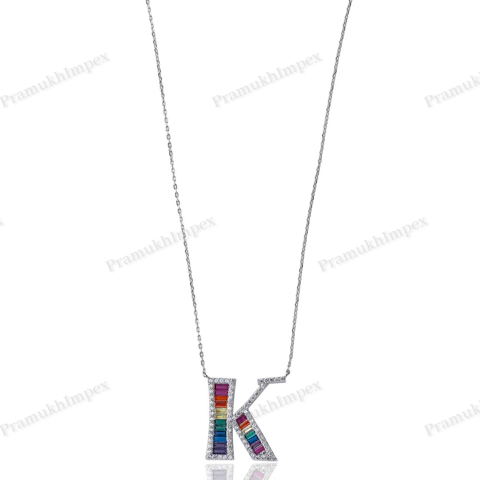 บาแกตต์ตัดมอิสซาไนต์หลากสี925ประดับเพชรหลากสีเงินสเตอริงฮิปฮอปสุดเท่จี้ตัวอักษรยูนิเซ็กส์แบบกำหนดเอง