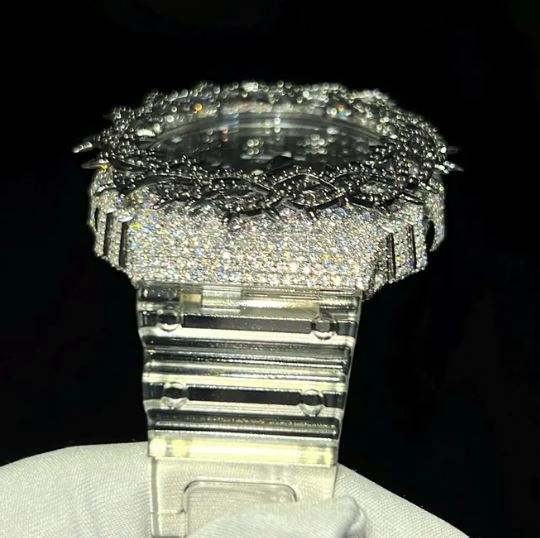 นาฬิกาผู้ชายประดับเพชรโมอิสซาไนต์เต็มเรือน สไตล์ฮิปฮอป นาฬิกาหรูหราประดับเพชรแบบเต็มเรือนสำหรับผู้ชาย นาฬิกาโมอิสซาไนต์แบบกำหนดเอง VVS