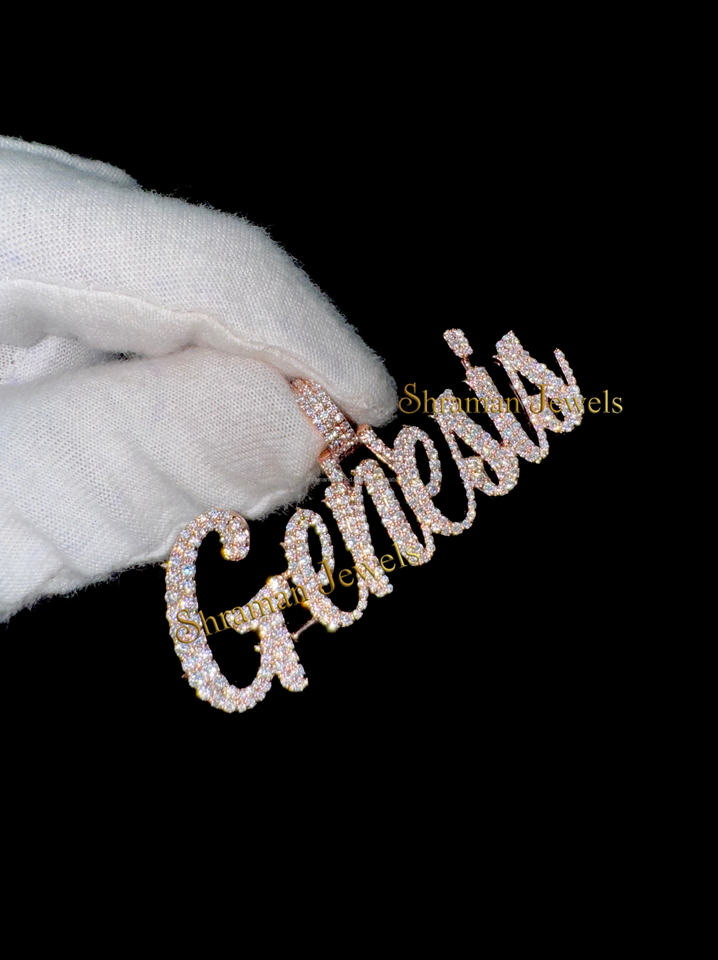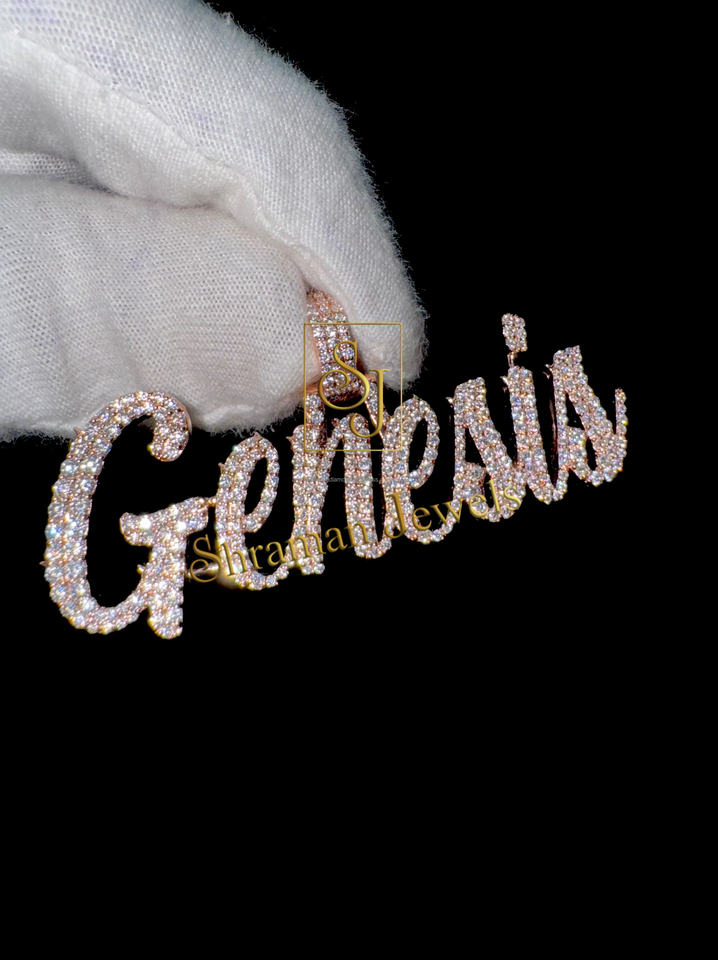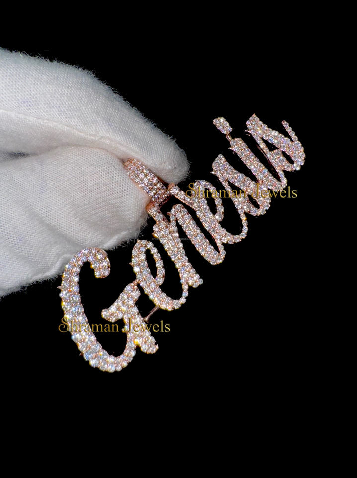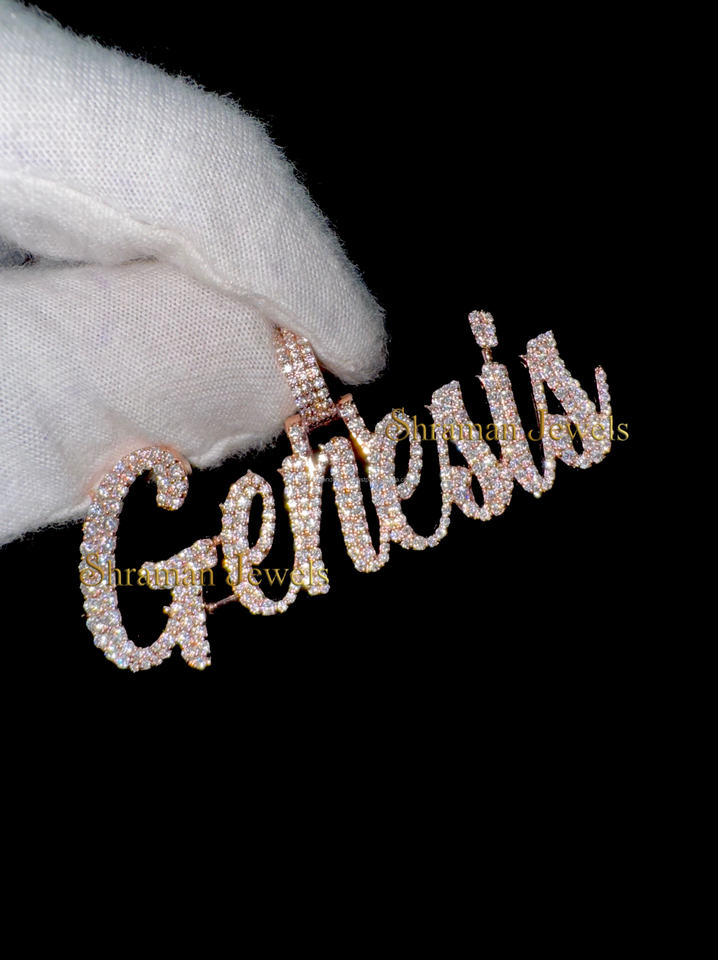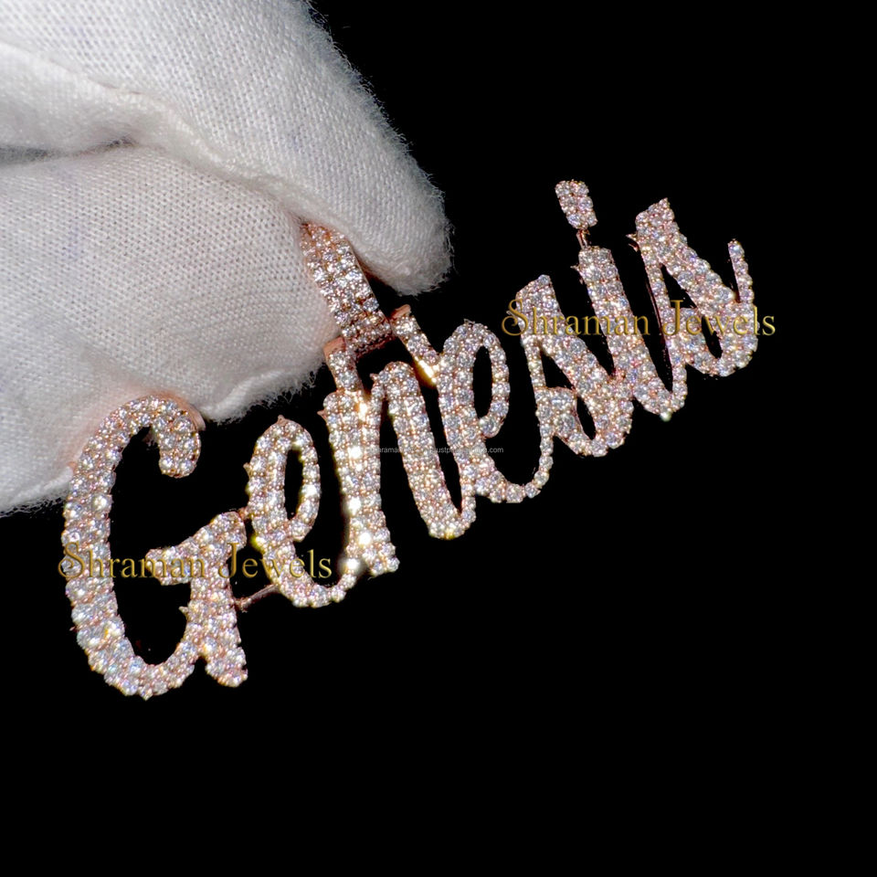 จี้เพชรมอยส์ซอไนท์ที่ออกแบบเองได้ทุกตัวอักษร10K แข็งสีโรสโกลด์หรูหราไม่เหมือนใครของขวัญสำหรับเธอ