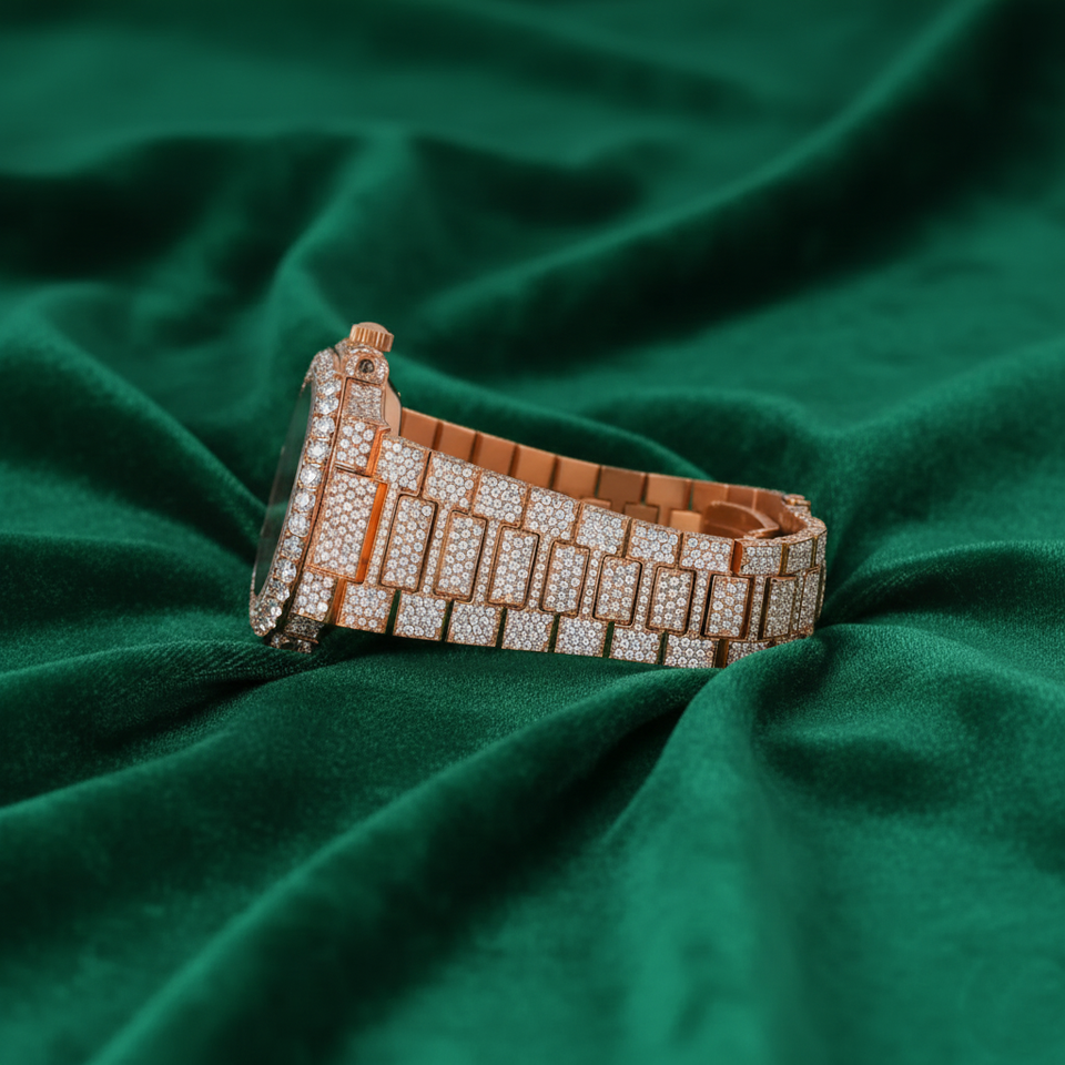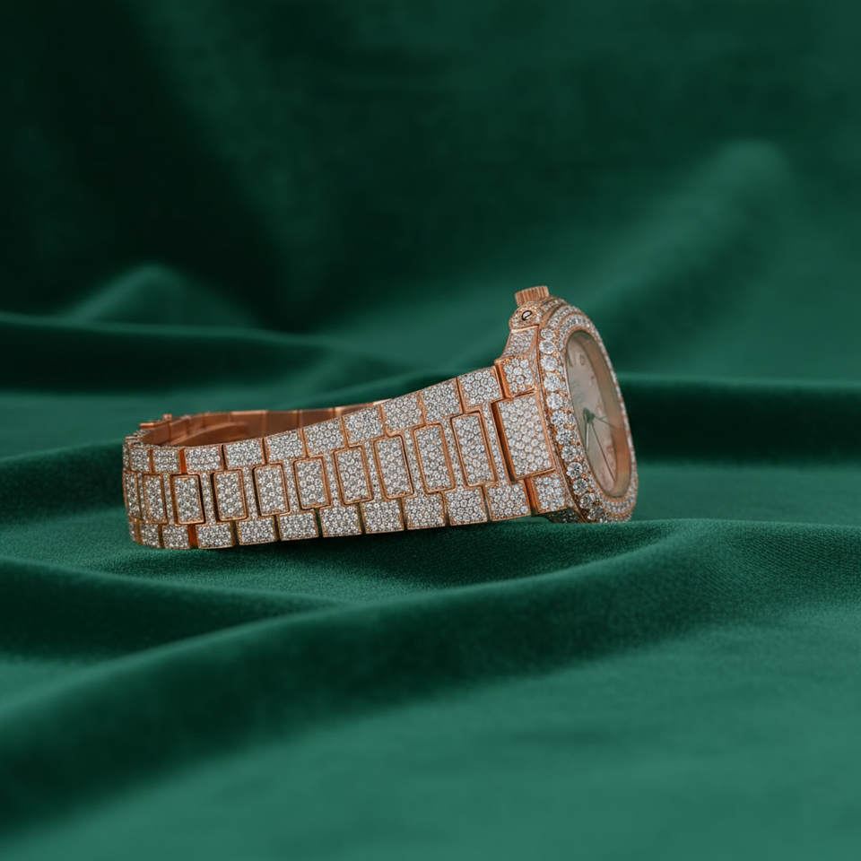 นาฬิกาเพชรโมอิสซาไนต์แบบฝังเพชรเต็มเรือน ของขวัญวันเกิดสุดหรูสำหรับผู้ชาย VVS ฮิปฮอป บลิงค์ วอทช์