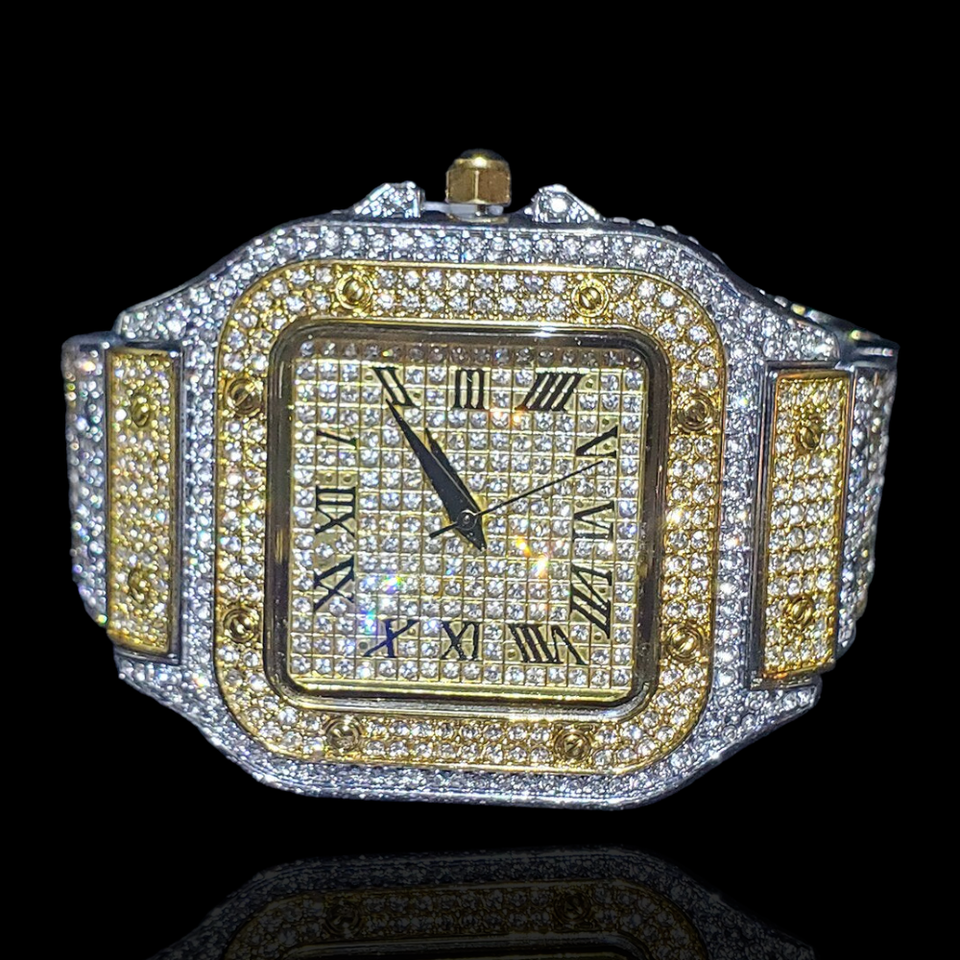 นาฬิกาทรงสี่เหลี่ยมหลากสีหน้าปัดตัวเลขโรมันพร้อมเพชรห้องแล็บจำลองที่มีประกายจากทุกมุม
