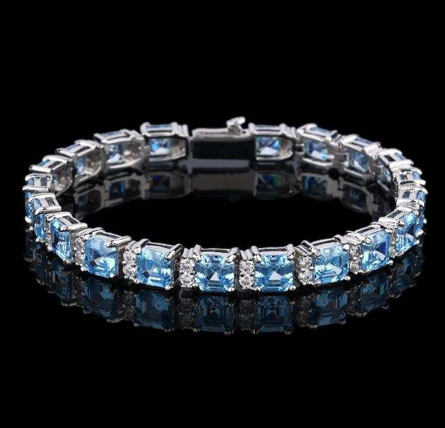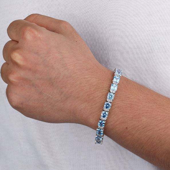 สร้อยข้อมือเทนนิสประดับเพชรโมอิสซาไนต์สีน้ำเงินเข้มแบบเต็มวง 925 เงินแท้ สร้อยข้อมือคิวบาประดับเพชร