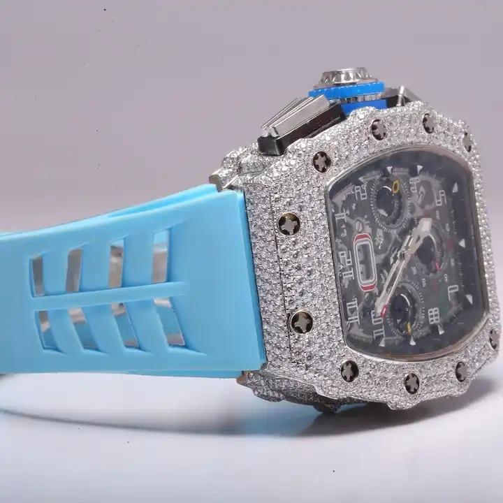 นาฬิกาเพชรหรูหรา moissanite คุณภาพ d vvs เคลือบน้ําแข็งเต็มรูปแบบในทองหรือเงิน 14ct และ 12kt สําหรับผู้ชาย