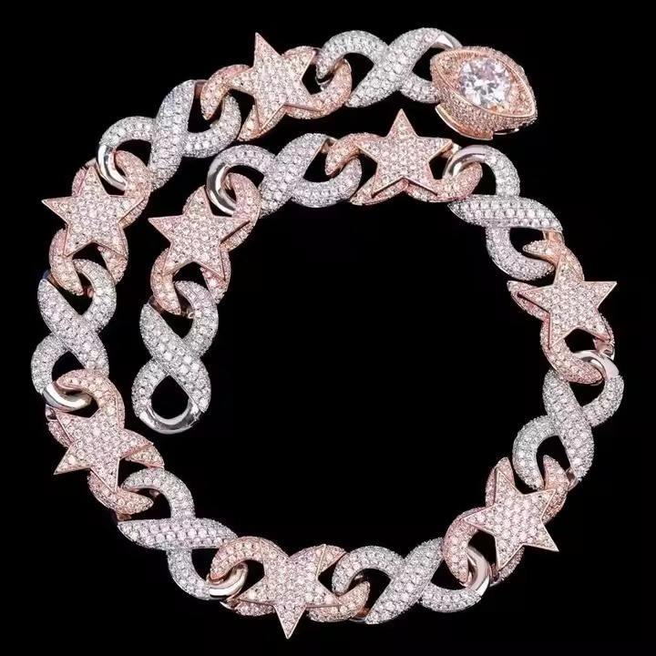 สร้อยคิวบาลิงค์แบบเต็มเส้นประดับเพชรหรูหราสีเงิน พร้อมเพชรคุณภาพ D สี VVS ผ่านการตรวจสอบด้วยเครื่องตรวจสอบเพชรโมอิสซาไนต์
