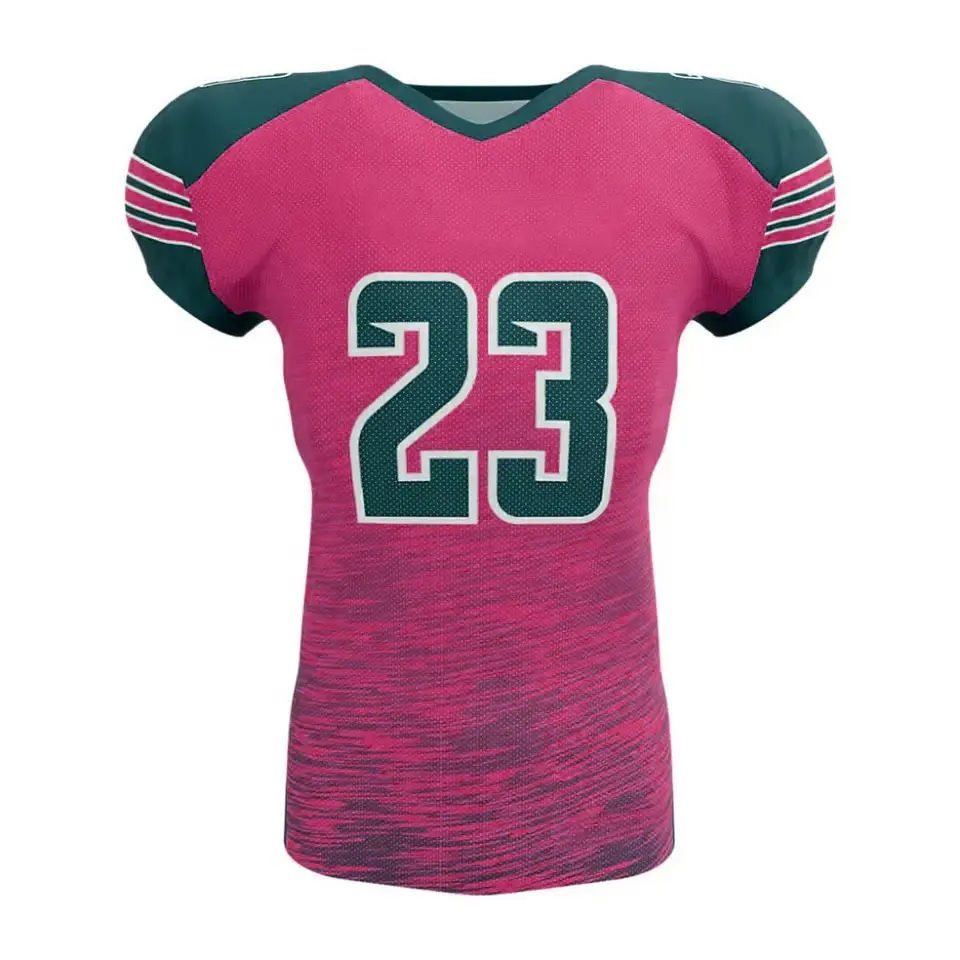 เสื้อและชุดยูนิฟอร์มอเมริกันฟุตบอลแบบสั่งทำพิเศษได้ตามต้องการ พร้อมไซส์ใหญ่พิเศษ แขนสั้น และลายพิมพ์แบบซับลิเมชั่น