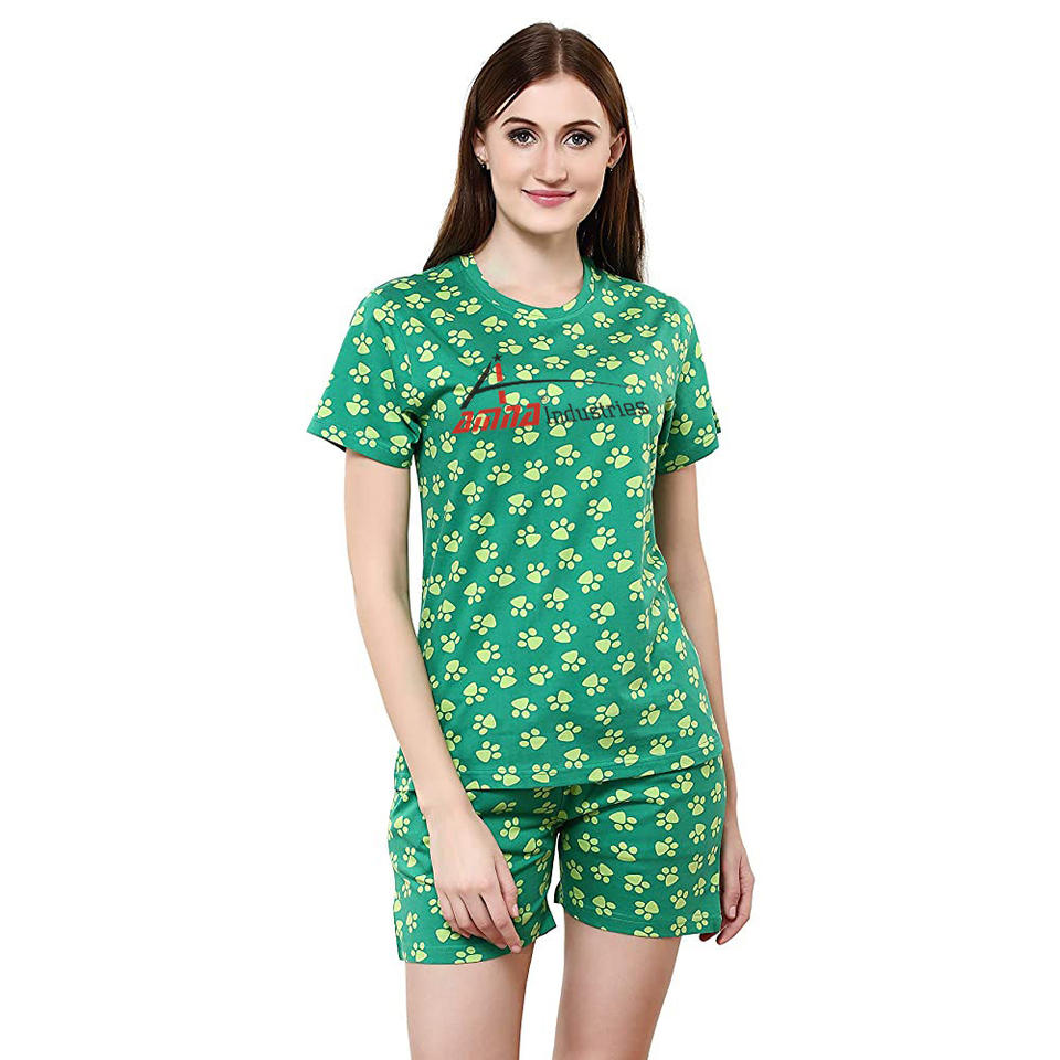 ชุดฤดูร้อนสตรีพิมพ์ลายเต็มตัวสีเขียว,เสื้อยืดแห้งเร็วพร้อมกางเกงขาสั้นชุดเสื้อผ้าลำลองสำหรับฤดูร้อน