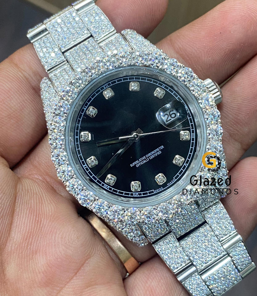 นาฬิกาสำหรับผู้ชายสไตล์ฮิปฮอปสุดหรูตัดเพชรสีสดใส