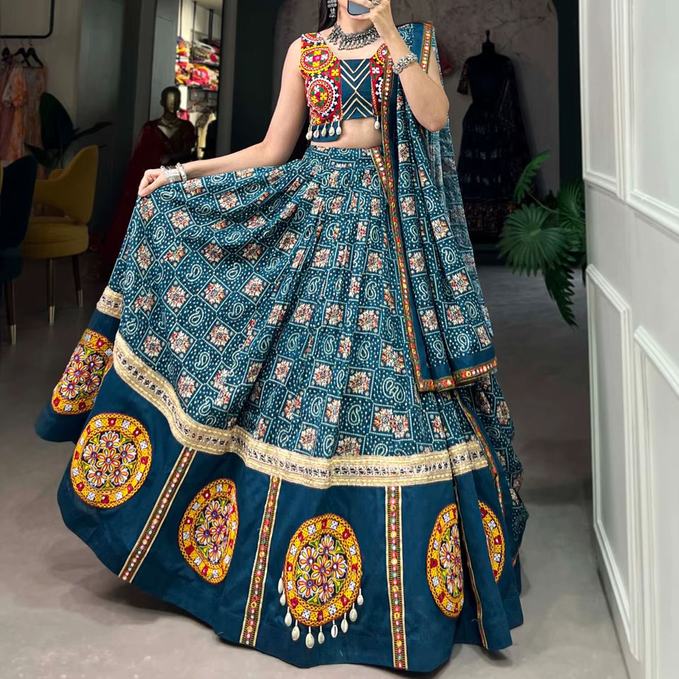 ชุดราตรีผ้าเรยอนบริสุทธิ์งานเย็บเต็มตัวแผ่นปะติดฟอยล์ lehenga choli ลายลูกไม้สัมผัสพื้นยาวถึงมหาวิหารรถไฟสำหรับการ์บ