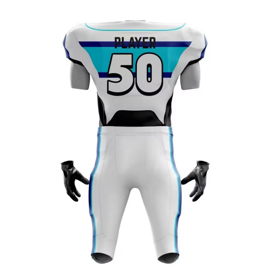 เสื้อเจอร์ซีย์ฟุตบอลอเมริกันปักลายปรับแต่งได้อย่างสมบูรณ์เสื้อระบายอากาศสำหรับทีมสโมสรชุดอเมริกันฟุตบอล