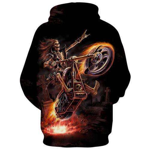 Fully Sublimated Skull Printed Unisex Pullover Hoodie Sweatshirt Coat Breathable Quick Dry Polyester/Cotton Casual Style Summer