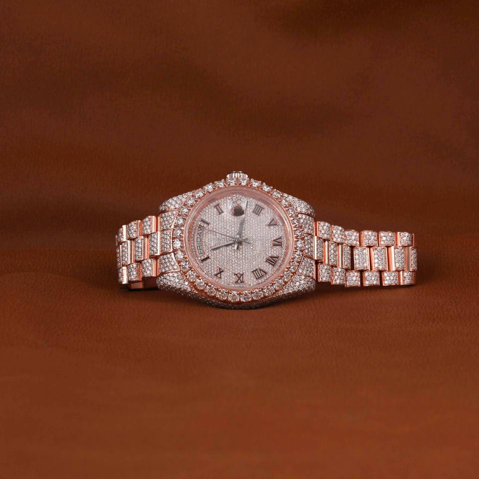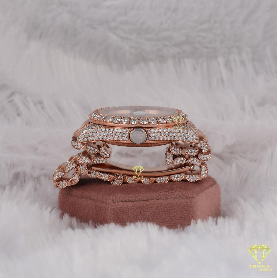 นาฬิกาข้อมือแฟชั่นสไตล์ฮิปฮอปสีขาวประดับเพชรหรูหราสำหรับผู้ชายเติบโตในห้องปฏิบัติการ