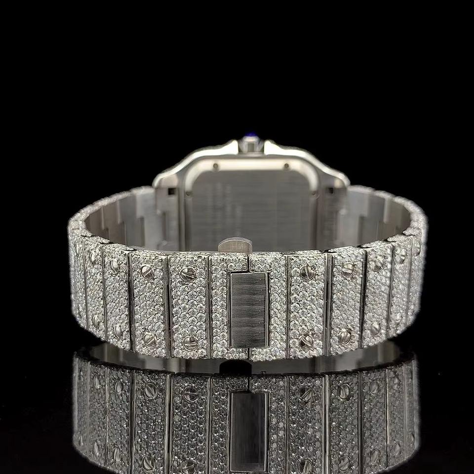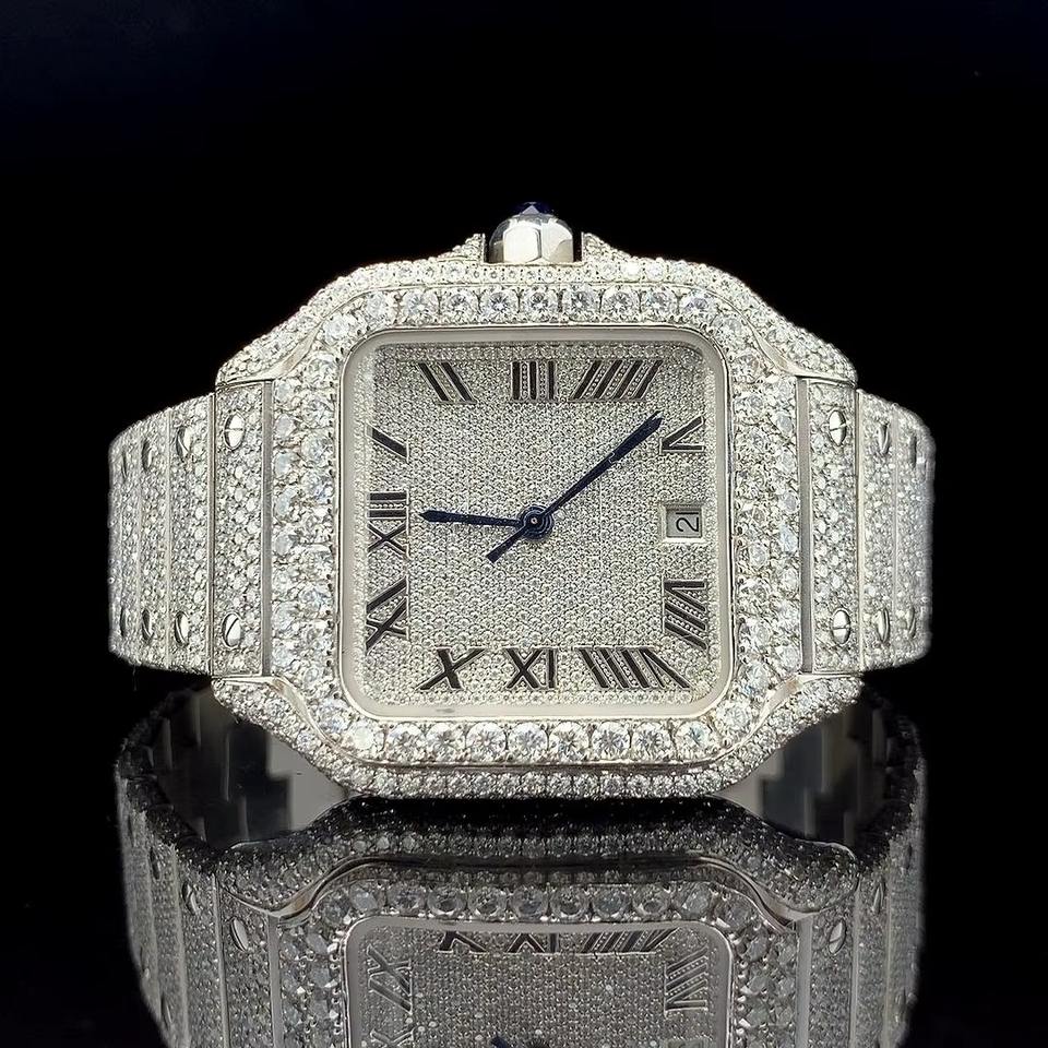 นาฬิกาหรูประดับมอยส์ซาไนต์เต็มเรือน โทนสีเงิน ออกแบบมาเพื่อการสวมใส่แบบฮิปฮอปสุดเท่ห์ พรีเมียม และมีสไตล์