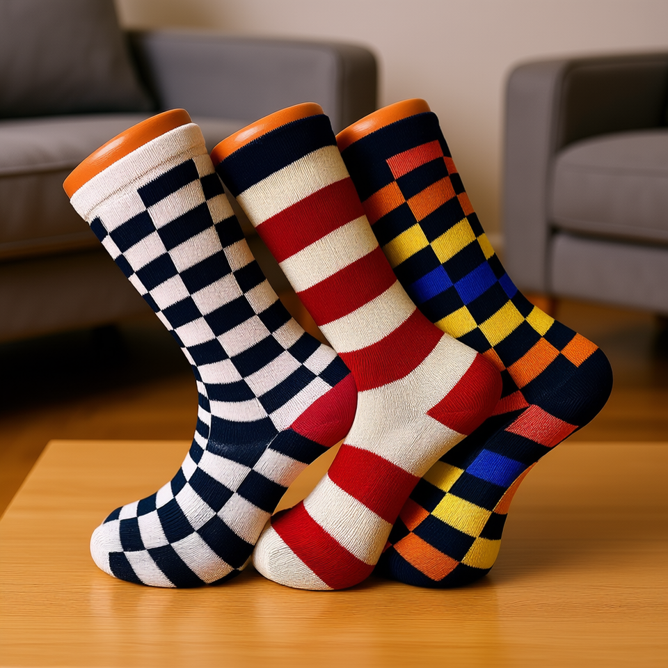 ถุงเท้าเดรสแบบ 3 คู่สำหรับผู้หญิง ดีไซน์ลายเรขาคณิตสีสันสดใส ทำจากผ้าฝ้าย