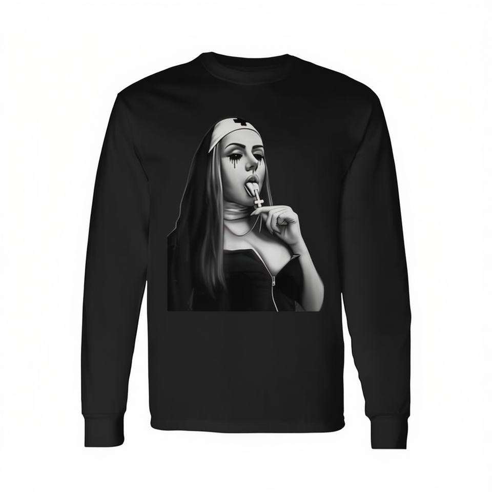 เสื้อยืดแขนยาวพิมพ์ลาย Fun Bad NUN religion