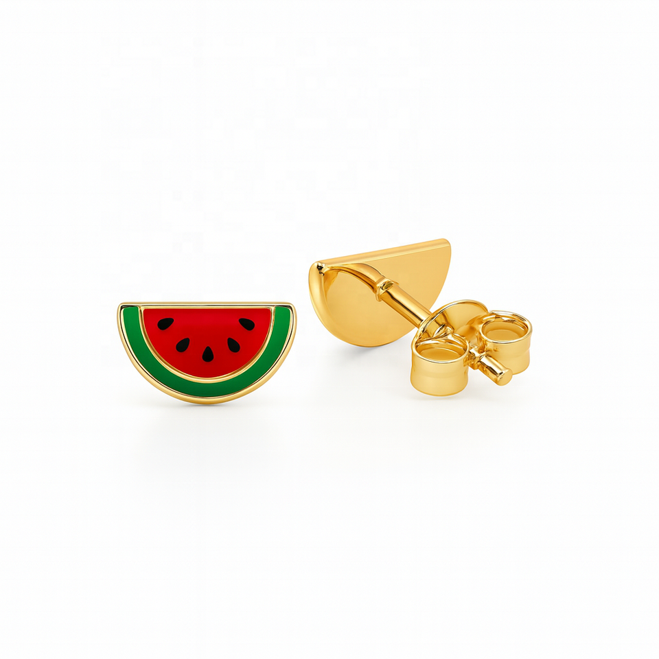ของขวัญเครื่องประดับสวยงามสำหรับเด็กและเด็กผู้หญิงลายแตงโมทอง14K แบบสนุกสำหรับฤดูร้อน