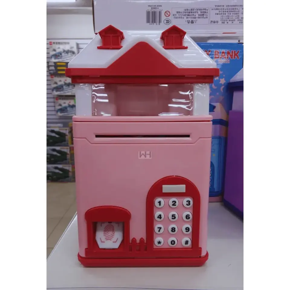 กระปุกออมสิน ABS ที่สนุกสนานและเป็นนวัตกรรมใหม่ พร้อมระบบสแกนลายนิ้วมือ เกมอิเล็กทรอนิกส์ สีชมพู