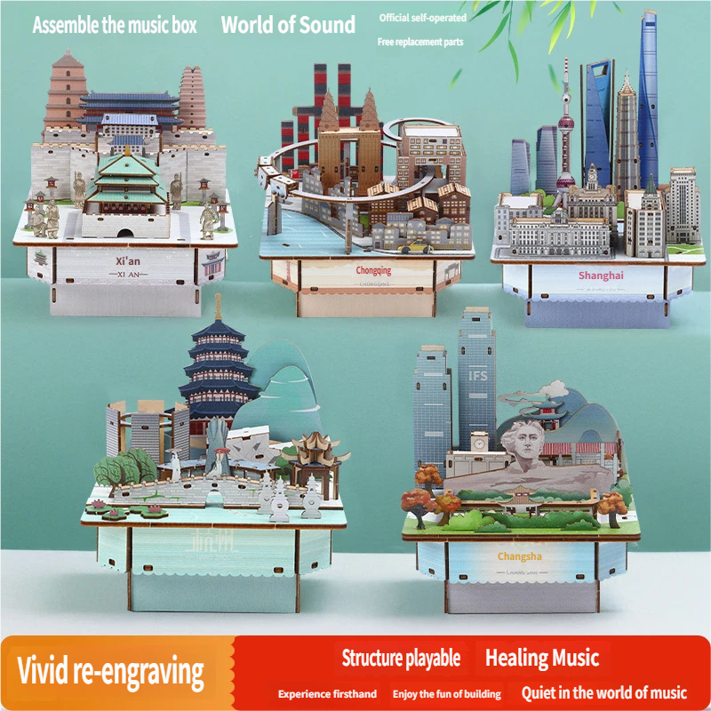 โมเดลเมืองสไตล์จีน 3 มิติ สนุกและทันสมัย ประกอบเองได้ กล่องดนตรี ของขวัญสำหรับเด็ก ขายส่ง