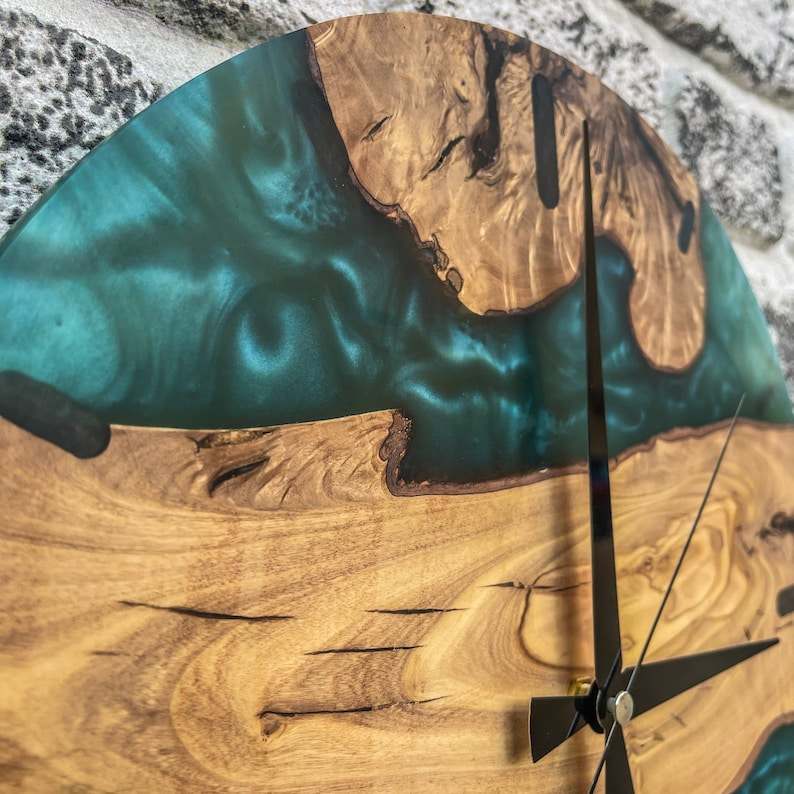 นาฬิกาแขวนผนังงานฝีมือเรซิ่นที่ใช้งานได้จริงและตกแต่งได้ พร้อมกรอบไม้ ให้การแสดงเวลาอย่างมีสไตล์สำหรับห้องนั่งเล่น