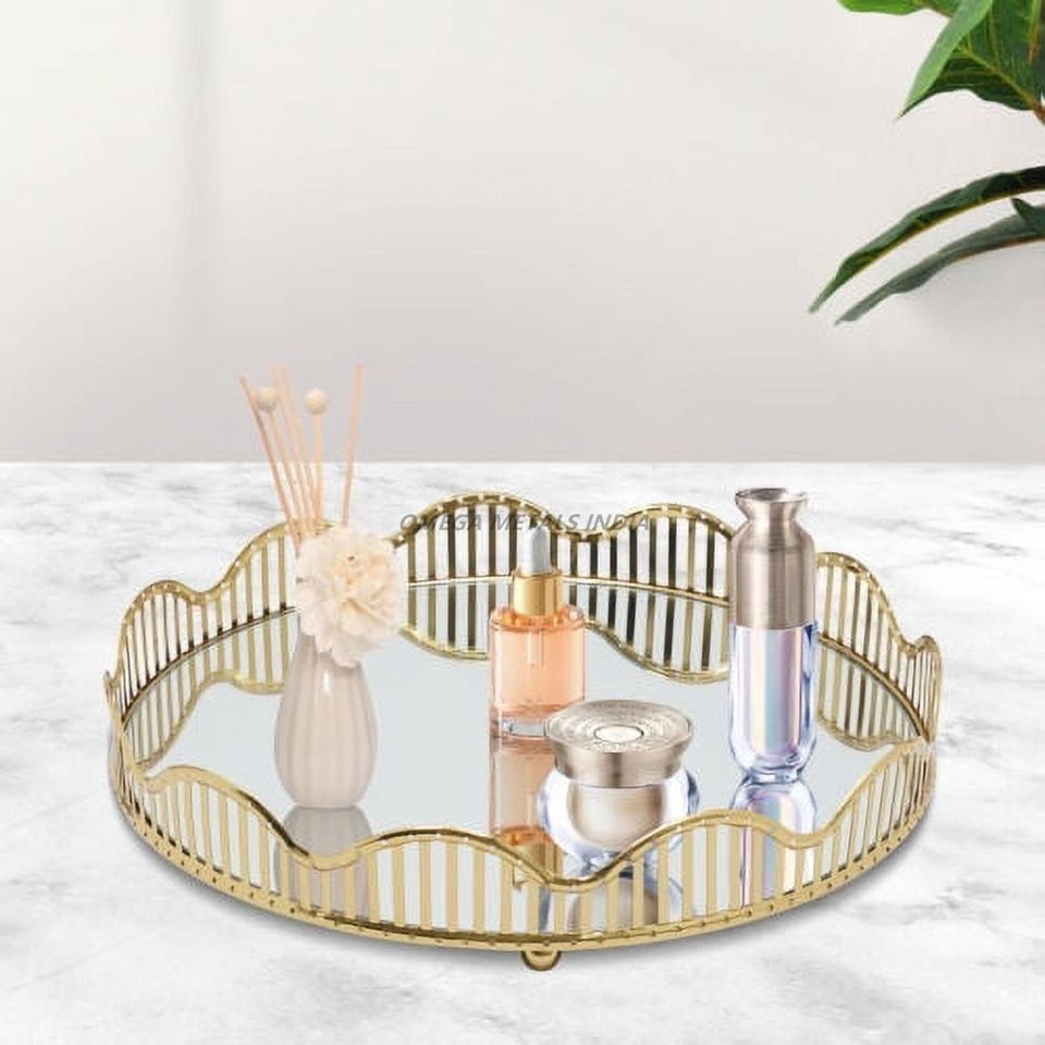 ถาดเสิร์ฟสีดำทรงกลมคลาสสิกใช้งานได้พร้อมด้ามจับที่แข็งแรงและพื้นผิวเรียบเนียนสำหรับการเสิร์ฟและการตกแต่งบ้าน