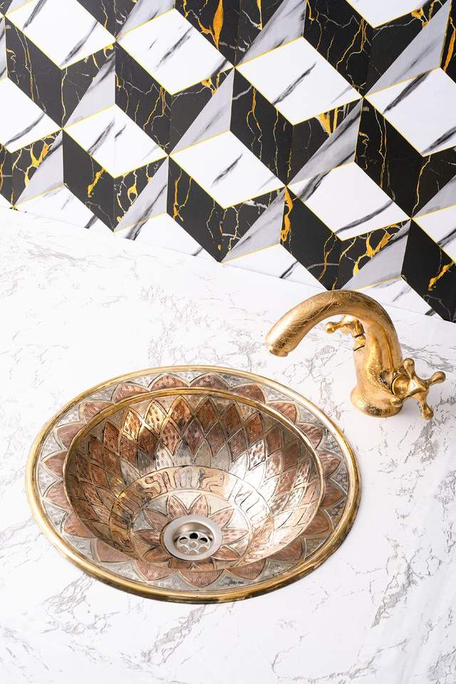 อ่างล้างหน้าทองเหลืองดีไซน์ใช้งานได้จริง สำหรับห้องน้ำหรูหรา มอบความสะดวกสบายและสไตล์เหนือกาลเวลา