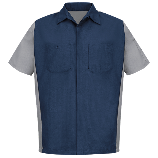 เสื้อเชิ้ตทูโทนแขนสั้นใช้งานได้พร้อมเทคโนโลยีป้องกันรอยเปื้อนและดีไซน์ชุดทำงานแบบมืออาชีพ