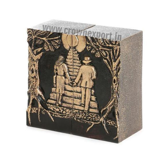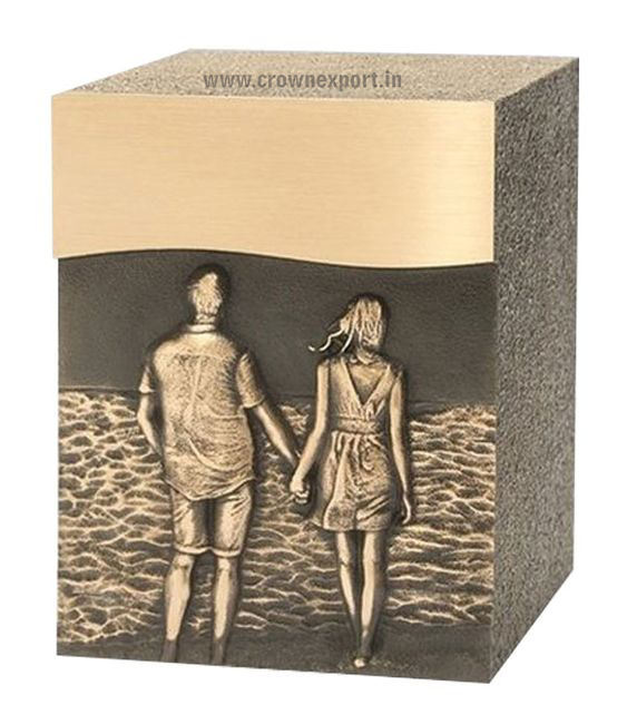 โกศบรรจุอัฐิสำหรับผู้ใหญ่ แบบคู่ ลายคู่รักเดินเล่นชายหาด สีทองและดำ ทำจากอะลูมิเนียม