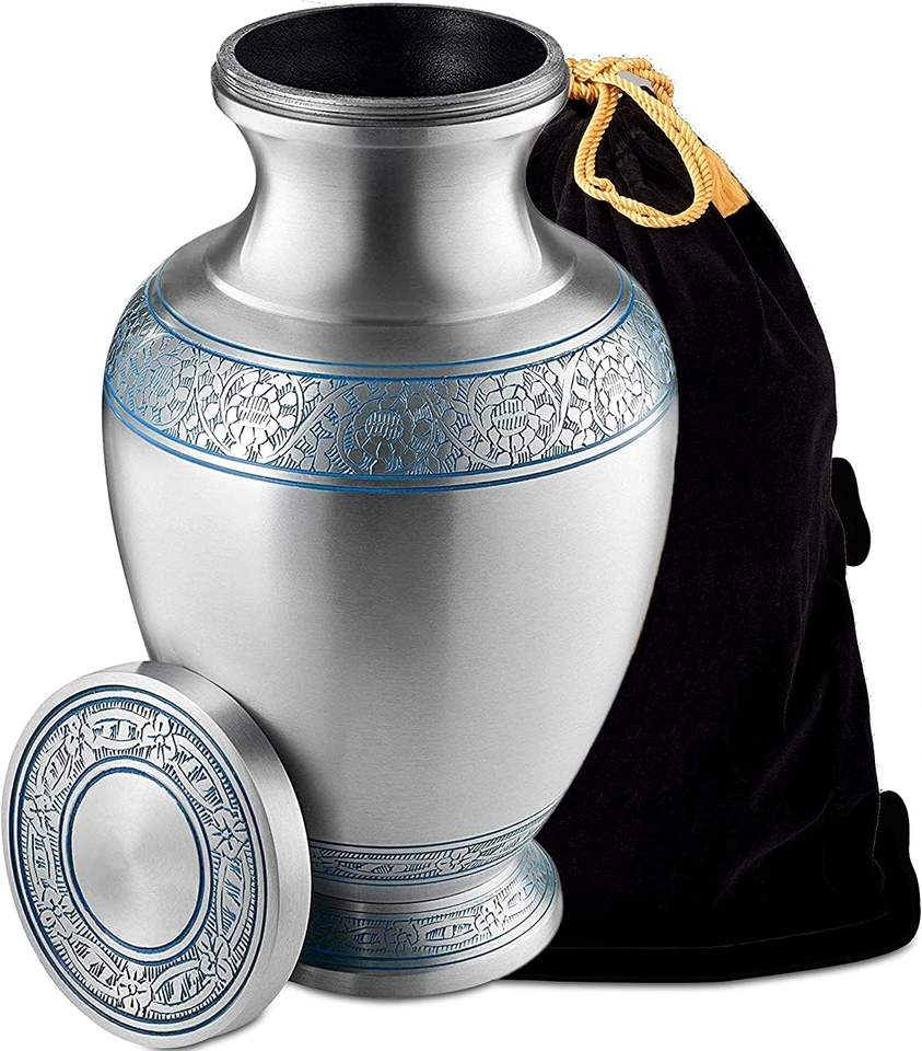 โกศเผาศพที่ระลึกสำหรับขี้เถ้าของมนุษย์ผู้ใหญ่หนักถึง200ปอนด์พร้อมถุงกำมะหยี่เงิน