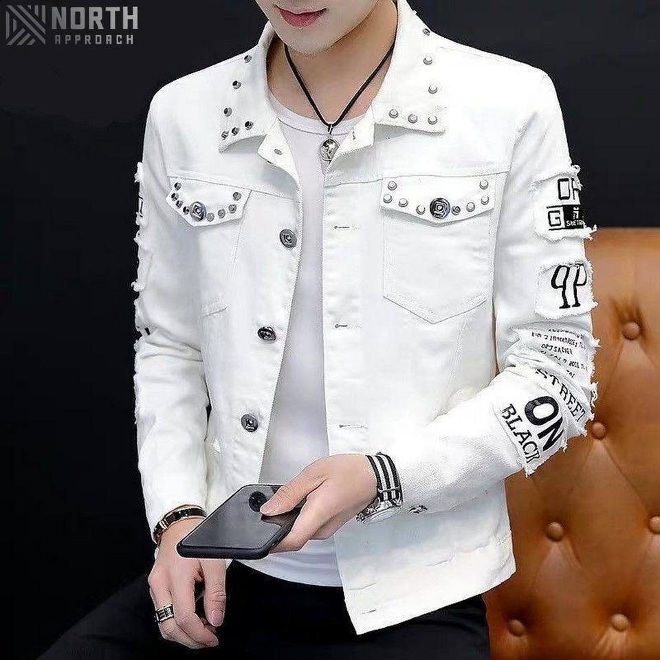 Funky Streetwear Patchwork Buttons Ripped Cropped Jean Denim Jacket For Mens And Ladies In All Size Men's Denim Jackets Coats