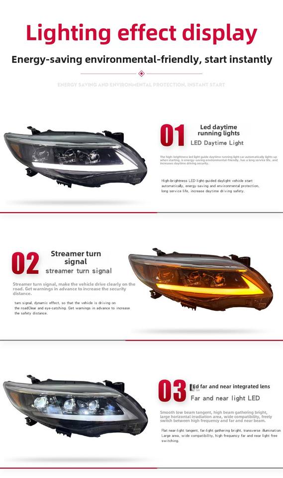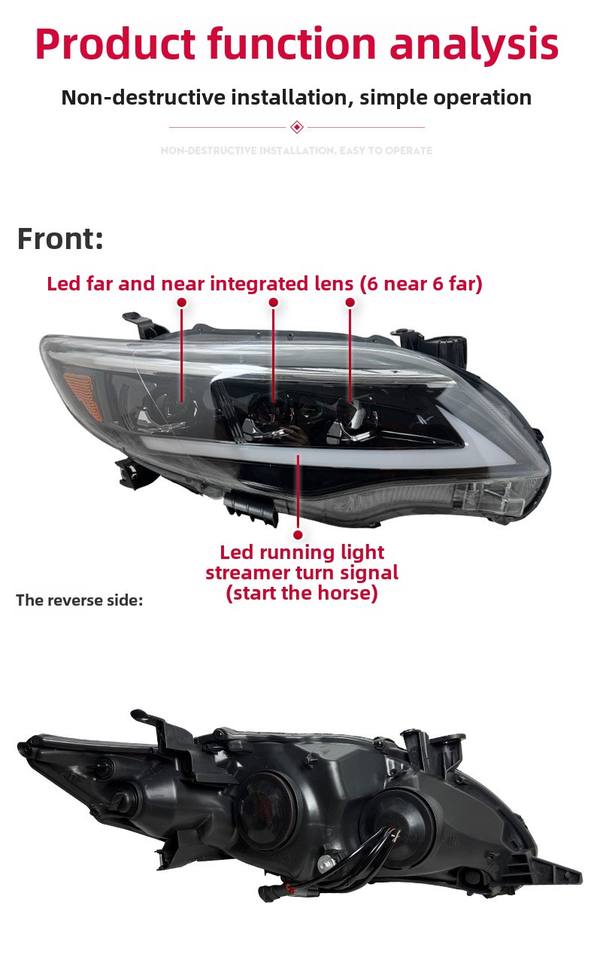 Funkywheel ไฟหน้า LED ดัดแปลง, ไฟหน้าดีไซน์ใหม่สำหรับ Toyota Corolla 2010-2013กันน้ำ