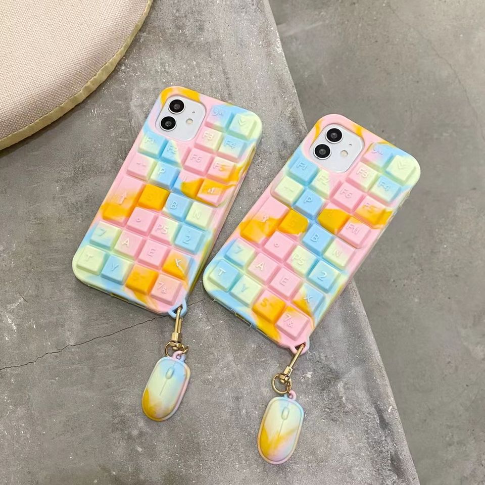 เคสโทรศัพท์3D แป้นพิมพ์สีรุ้ง,เคสซิลิโคนสำหรับ Iphone 13 12 Pro Max 11 6 7 8 Plus Mini XR X XS