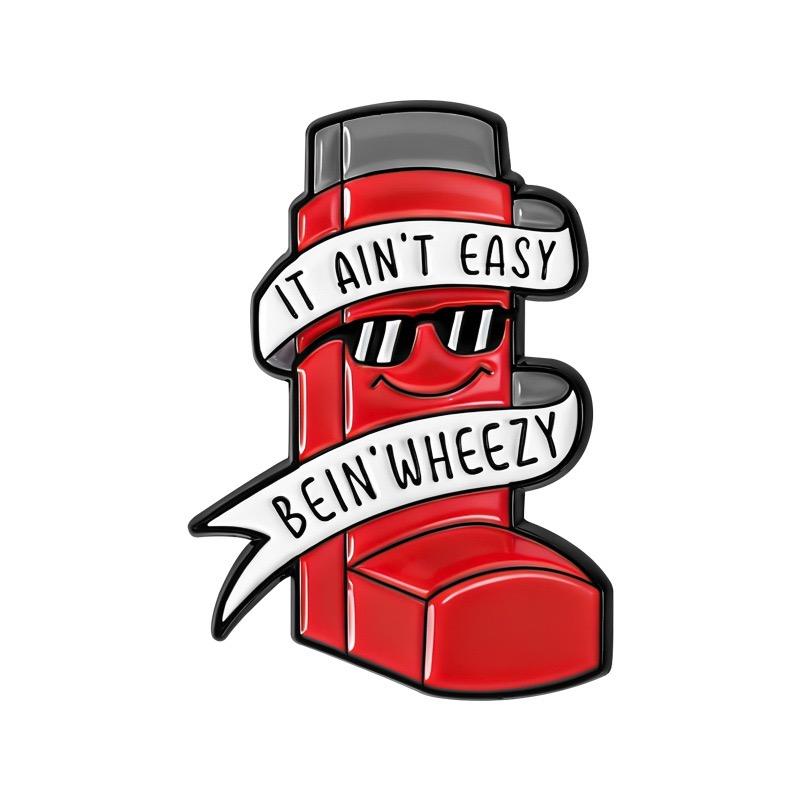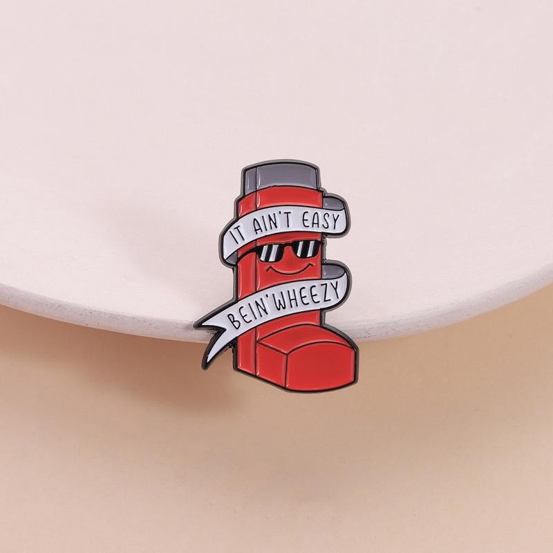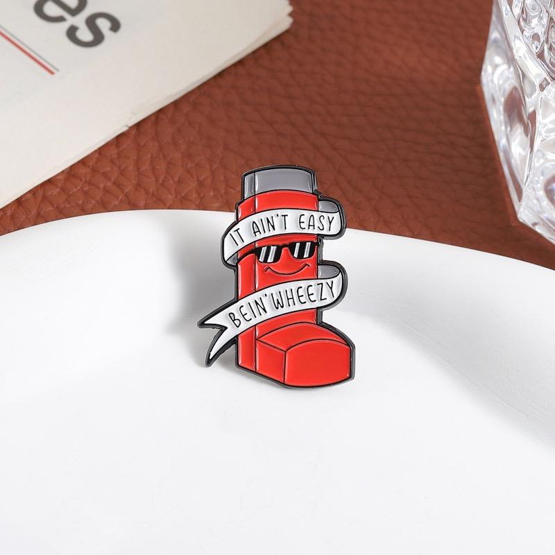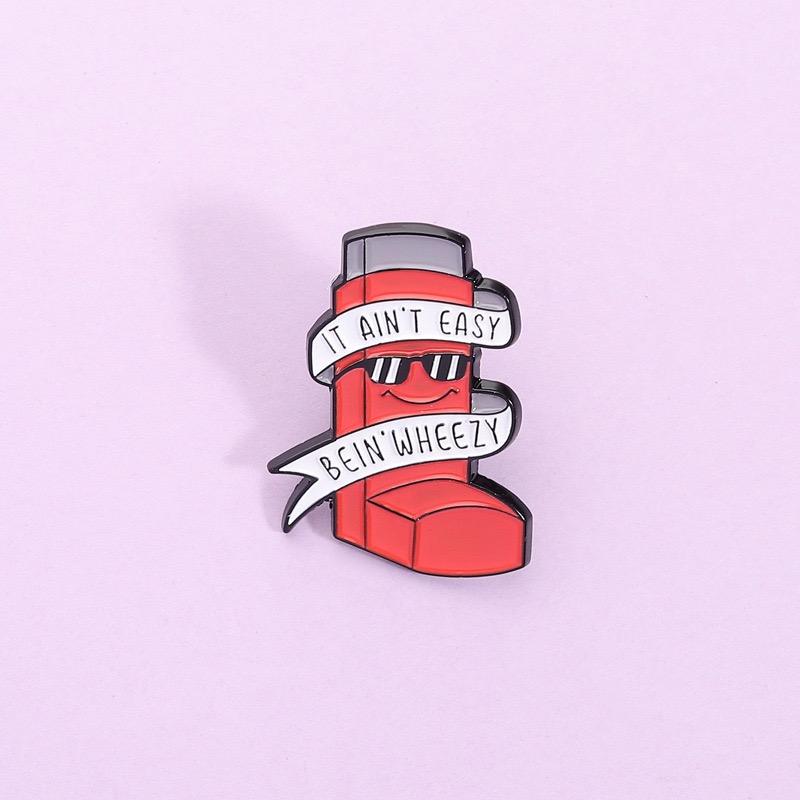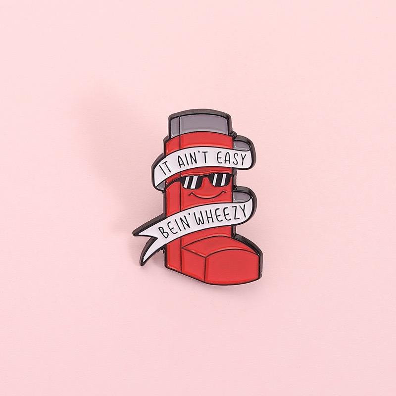 Funny Angel Pink Asthma Inhaler Enamel Masonic Pins Not Easy Bein Wheezy Humor Brooch Lapel Backpack Badge Jewelry Gift Girls