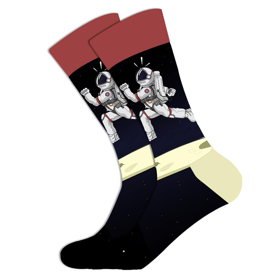 ถุงเท้าลายแปลกใหม่สีสันสดใสแฟชั่นสุดเก๋ ลายนักบินอวกาศ ลายผลไม้ ลายพิทาญา ลายคณิตศาสตร์ ลายหมากรุก ผลิตจากผ้าฝ้ายหวีอย่างดี