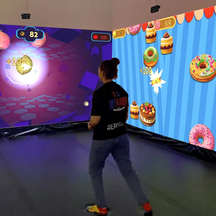 ธีมคริสมาสต์ตลกอุปกรณ์เกมติดผนังแบบอินเทอร์แอคทีฟบอลสระในร่มขว้างด้วยเกมพื้น13เกมสัมผัสหน้าจอขนาดใหญ่
